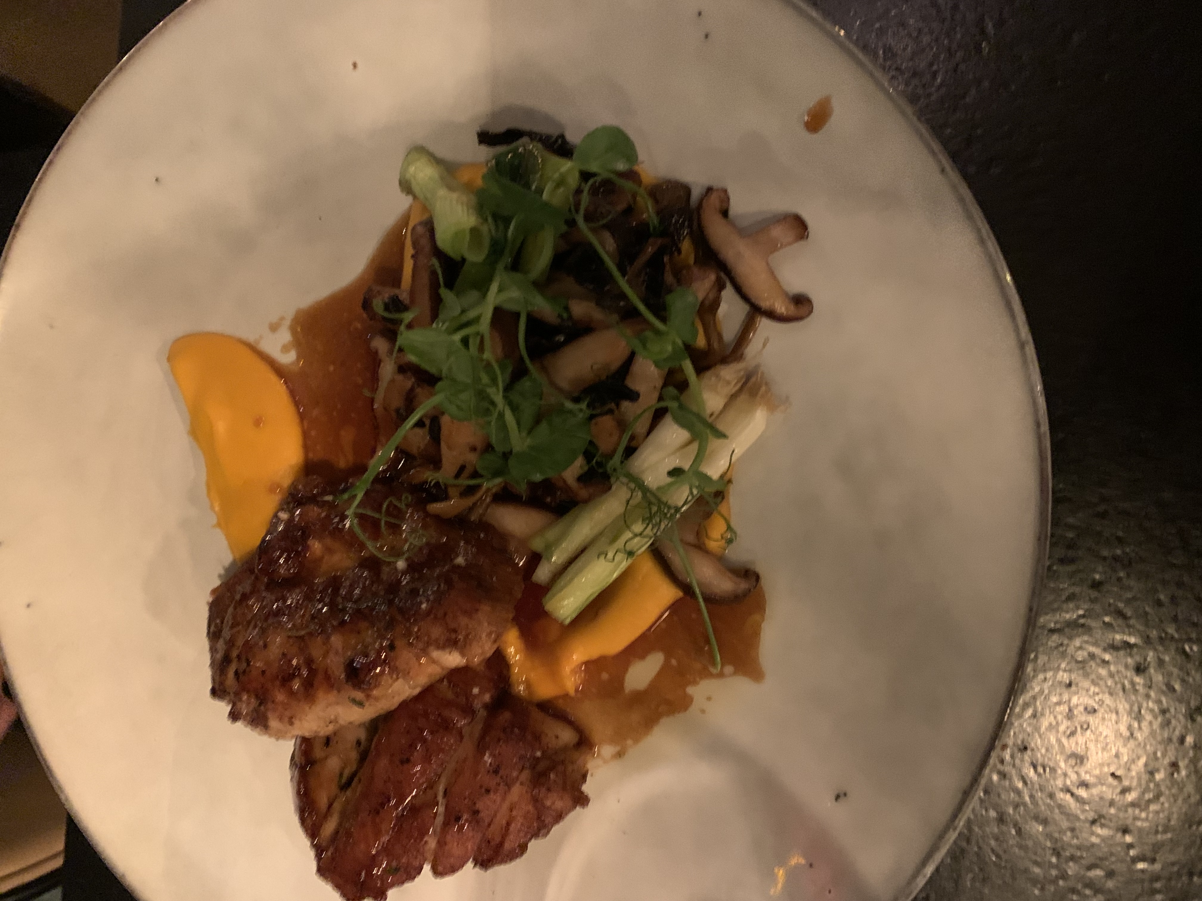 Nourriture délicieuse avec des créations! La plupart des sauces sont bien fouettées, ce qui donne à chaque bouchée un toucher très léger sur la langue. Personnel sympathique et ambiance décontractée Forte recommandation !
