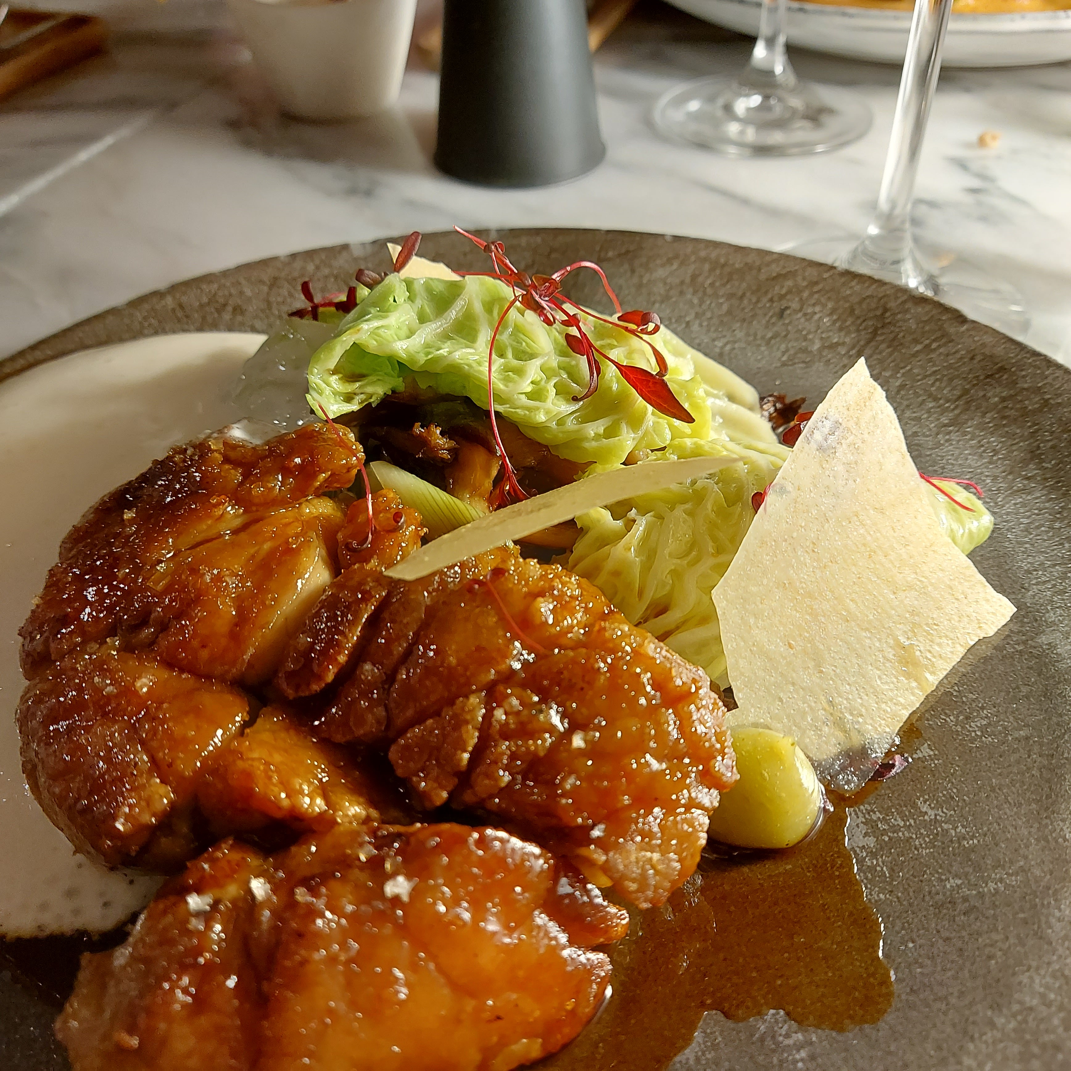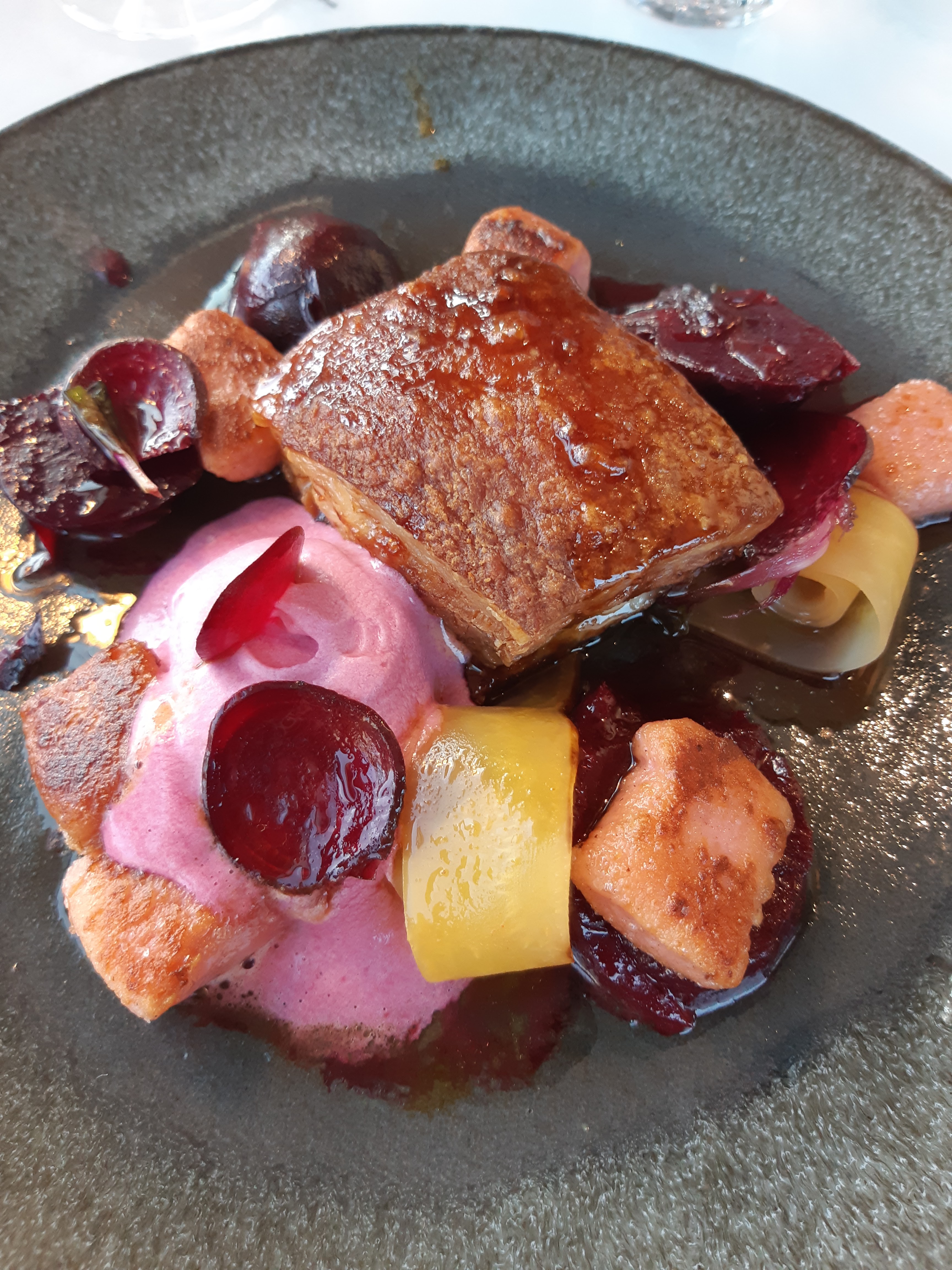 Tout avait bien commencé. L'amuse bouche servi était délicieux, l'entrée commandée un régal mais grosse déception avec le plat principal. Nous avons fait le choix de la côte de cochon pour deux mais l'accompagnement était beaucoup trop salé et donc impossible de terminer. Nous en avons fait part en insistant sur le fait que la viande était par contre très bonne. Il n'y a eu aucun geste de leur part et pour un plat à 76 euros il est quand même dommage de ne pas maîtriser l'assaisonnement. De belles promesses mais cette expérience fait que je n'y retournerai pas.