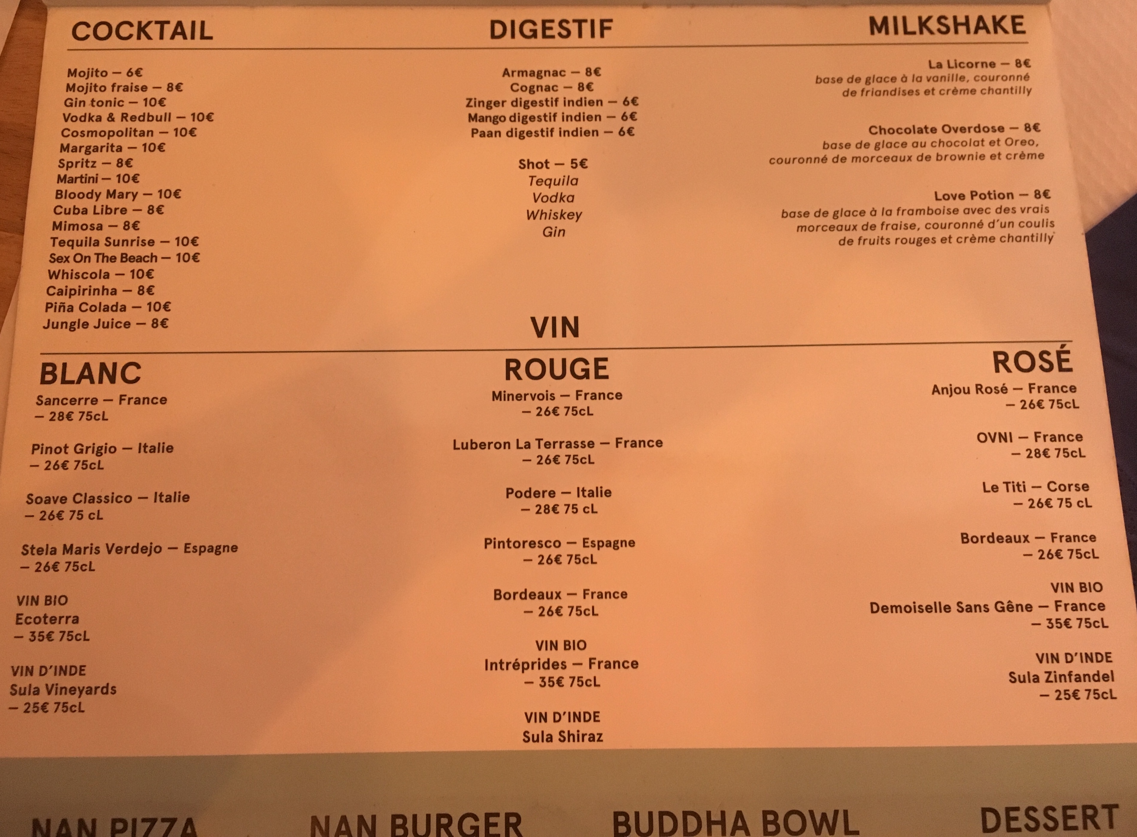 Très bon restaurant indien moderne. Avec des grands classiques tel que tika massala, poulet au curry, agneau et poisson. Avec des plats moderne tel que Nan Burger et Nan Pizza ou encore Buddha Bowl. Beaucoup de plat au alentours de 10-12€. Une très bonne expérience avec de nombreuses options végétarienne et vegan.