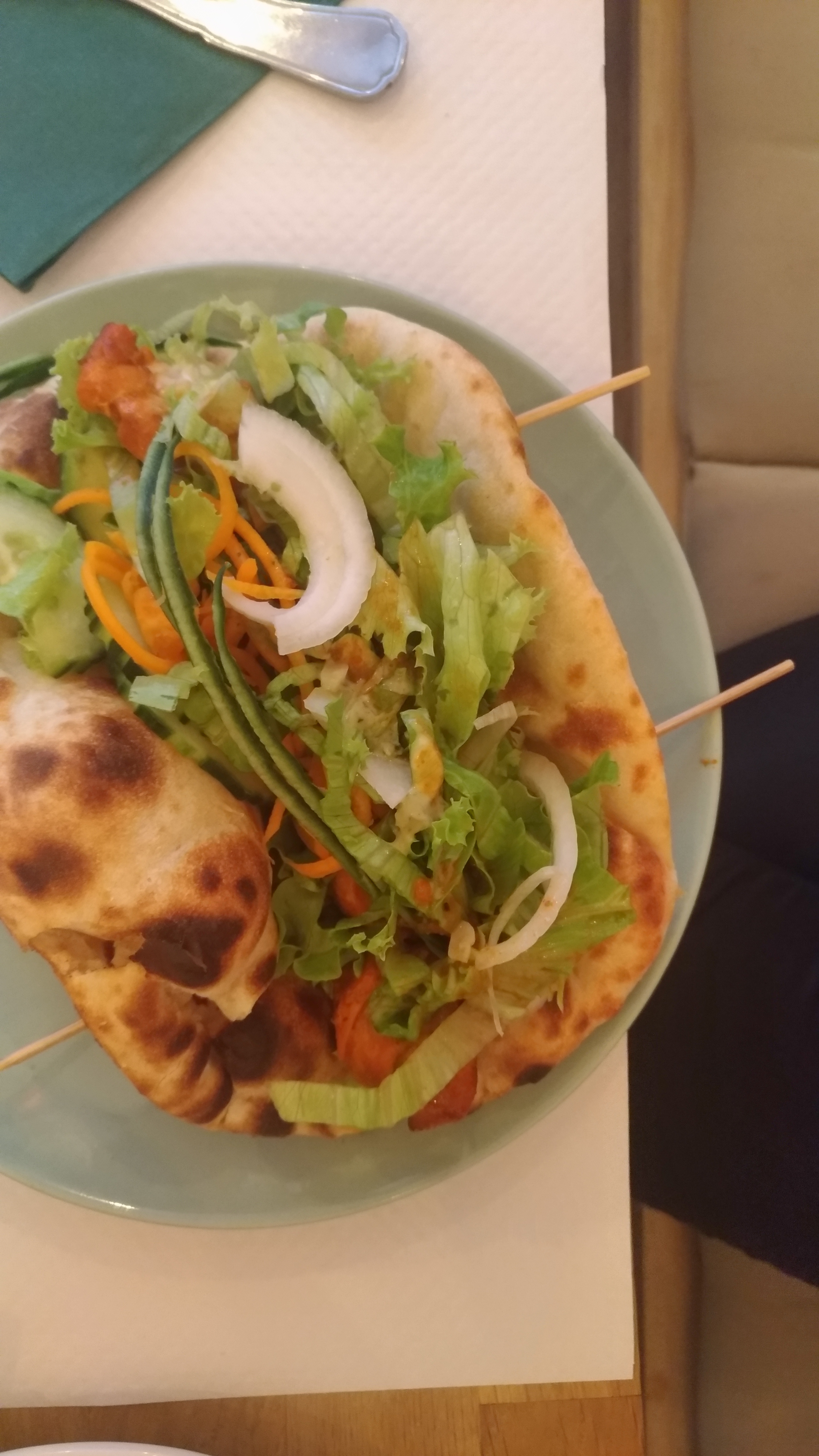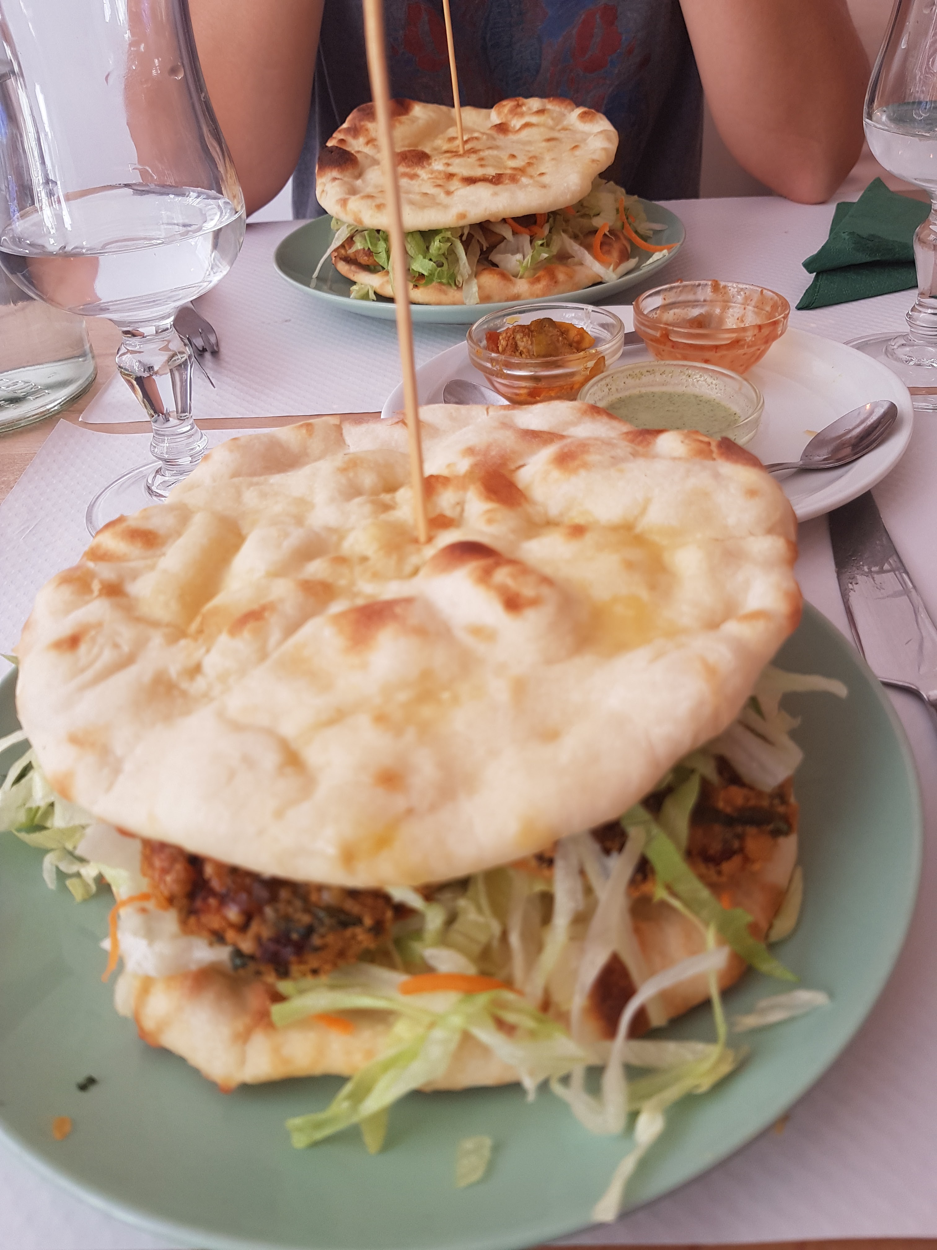 Lieu agréable, serveuse sympathique, avec quelques plats assez inhabituelles (nan burgers & nan pizzas). En revanche, j'ai trouvé la nourriture un peu sèche... Dommage..