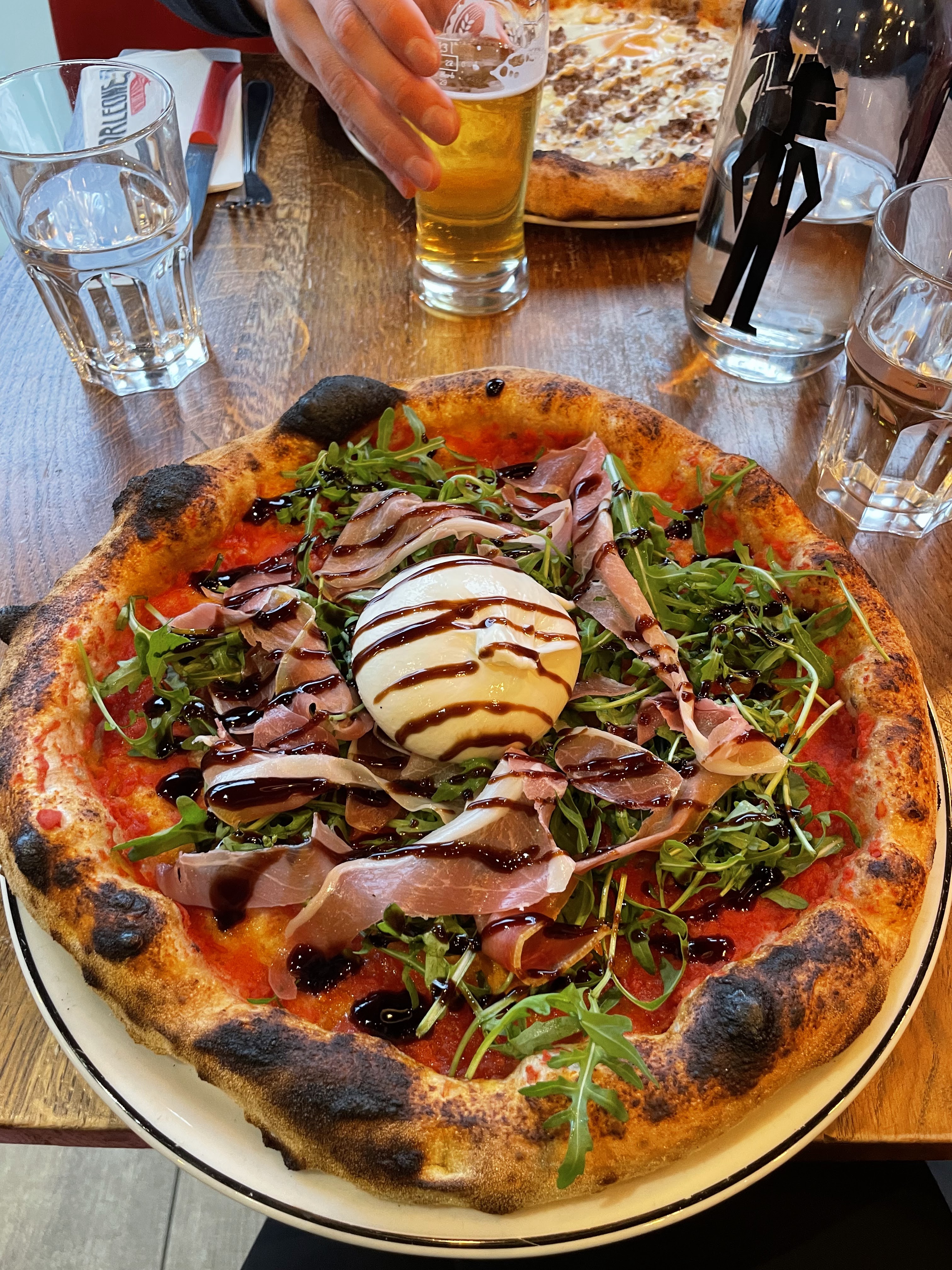 Conseillé par nos voisins. Nous avons été extrêmement déçus. Bien que la devanture soit jolie, cela s'arrête là. L'accueil est inexistant, et l'amabilité pas plus que cela. Je m'attendais à ce que nous nous régalions. Dommage, Ça n'a pas été le cas, surtout au prix des pizzas. Pour finir, même si en principe nous adorons le balsamique, il y en avait vraiment beaucoup trop, dénaturerant le goût avec un aspect vraiment très sucré.