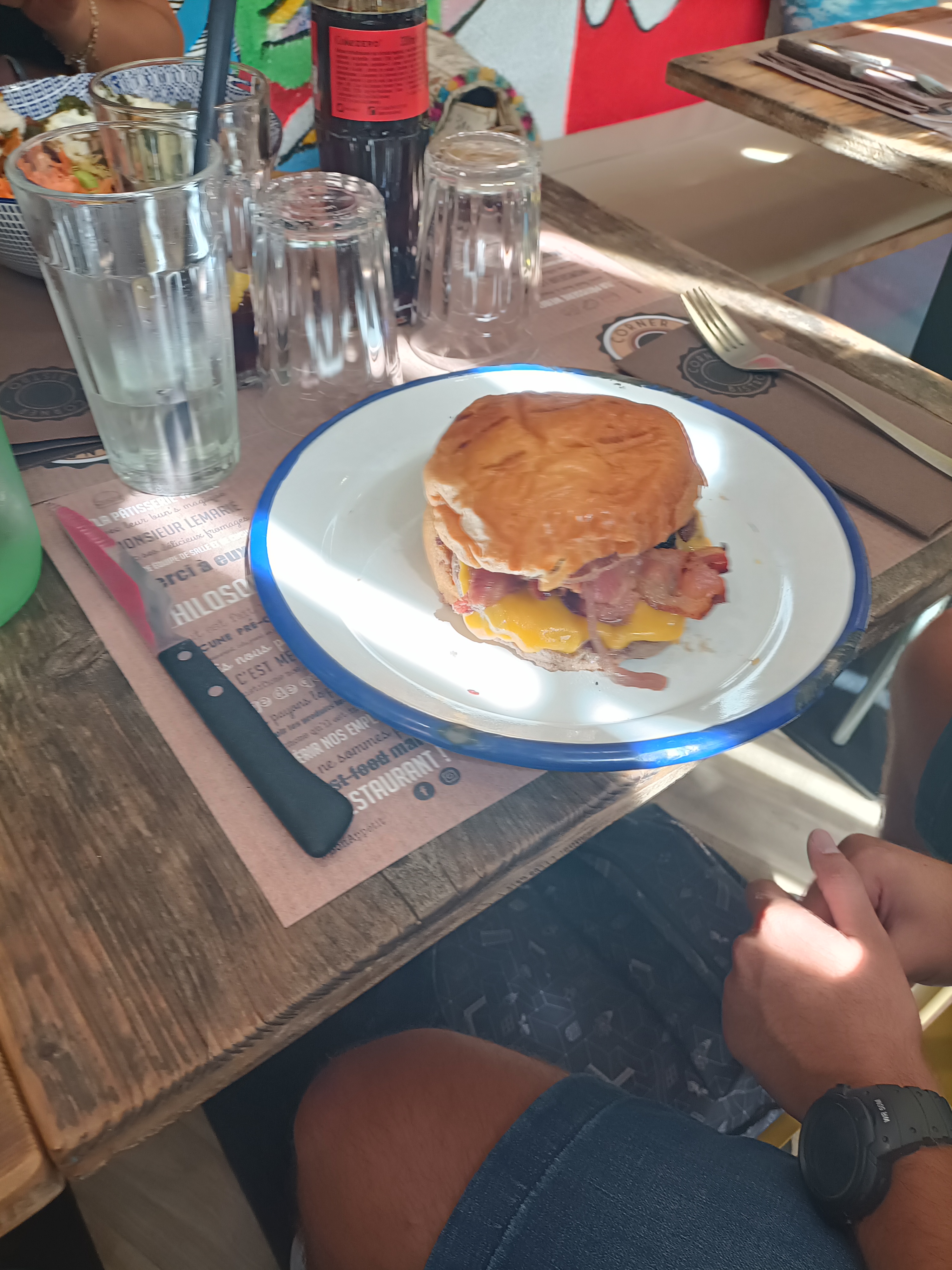 Restaurant de burgers er salades. Agréable. Ombragé avec des buses d’eau pour rafraîchir. La cuisine est bonne et fraîche. Le pain des burgers juste un peu sec. Sauce frite maison très bonne