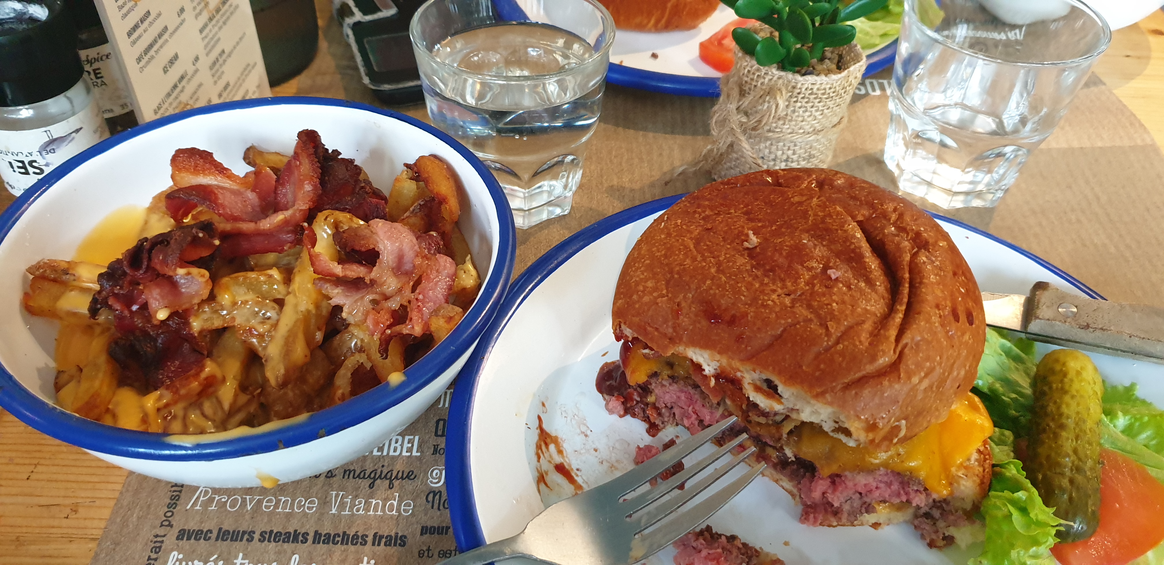 Alors voilà un Burger restaurant qui affiche les valeurs de l’équipe qui le compose sur ses sets de table : cuisson à la demande, qualité, bien être des employés. Et je confirme sans vouloir fair de publicité. Les plats sont cuisinés à la commande (on est pas dans un fast-food), la qualité est au rendez-vous et là pas de secret : des ingrédients de qualité par les meilleurs partenaires locaux pour le pain, la viande et les fromages. Enfin, après discussion avec une des serveuses j’ai eu confirmation que les employés étaient « heureux » de bosser dans ce restaurant, « même si la restauration est un métier dur », dixit! Intéressant également d’afficher les partenaires (fournisseurs) dans un esprit gagnant-gagnant... certains restaurateurs d’Aix-en-Provence devraient s’en inspirer... Une belle leçon de management d’une organisation. Au fait, rapport qualité/prix très bien, accueil convenable et souriant, et localisation plein centre, places en terrasse, en véranda ou à l’intérieur. What else ? Allez, des suggestions : deux, trois girolles fraîches dans le burger montagnard au reblochon et ce serait le meilleur burger au monde 🌍. J’aurais bien mis un QR code vers la page Facebook du restaurant plutôt qu’une simple icône. 😄