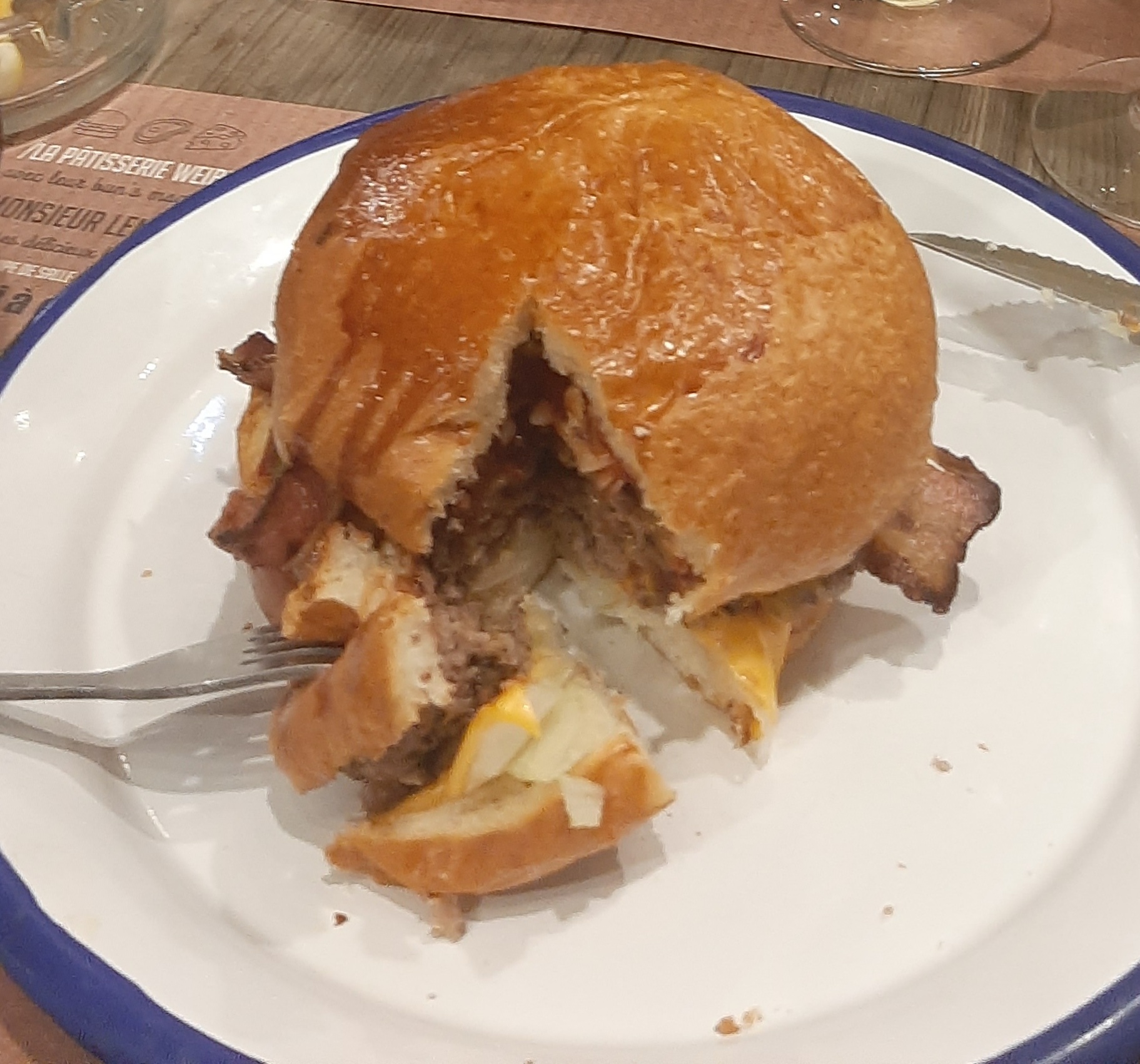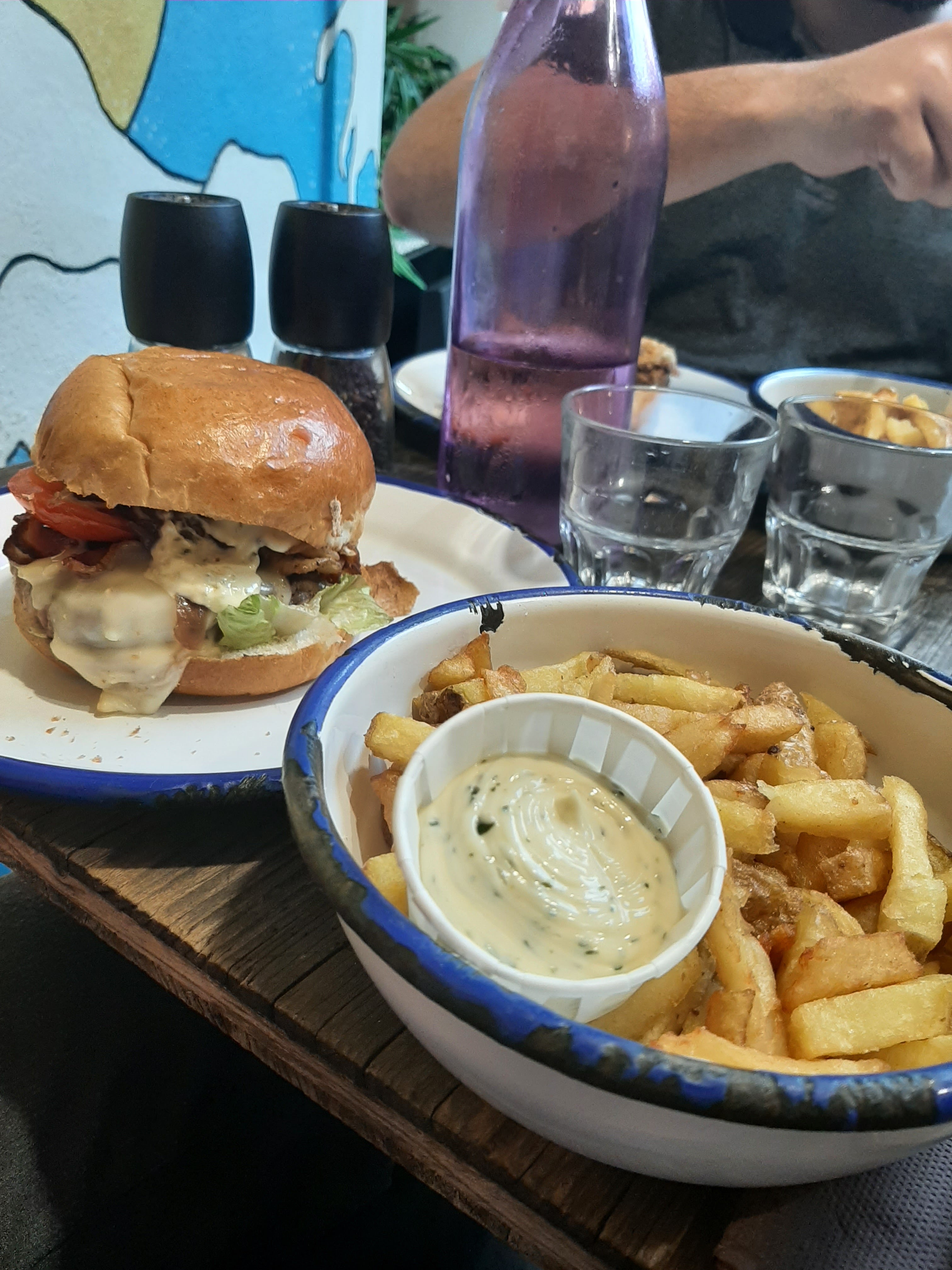 Burger excellent 2 bémols : Dommage que la viande soit bien cuite alors qu'on demande bleu Recommandation : prenez la salade, j'ai pris les frites et ni au pas touché car trop cuite malheureusement...dommage pour des frites maison