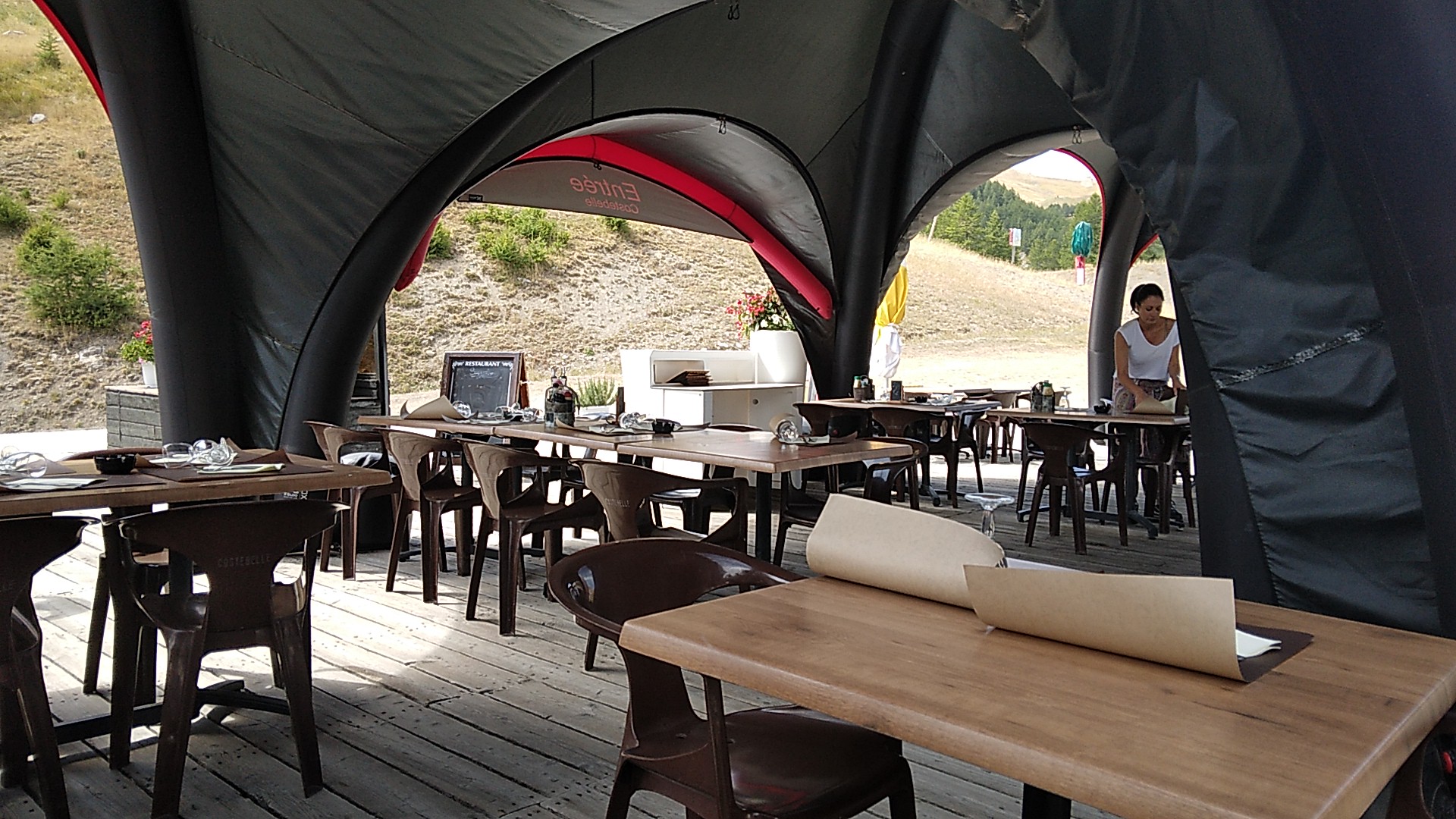 Qu’attendre d’autre d’un restaurant d’altitude ? Tenu par des locaux, une équipe de serveurs attentifs, des plats (viandes, pâtes, plats montagnards) compris entre 18 et 30€ mais copieux, parfaitement adaptés à des skieurs affamés, dans un cadre de chalet. What else do you expect from a mountain restaurant ? This establishment is managed by local people, with a team of professional waiters, and offers harty meals (meat, pastas, mountain food) from 18 to 30€, in a chalet. Perfectly adapted to a public of starving skiers.
