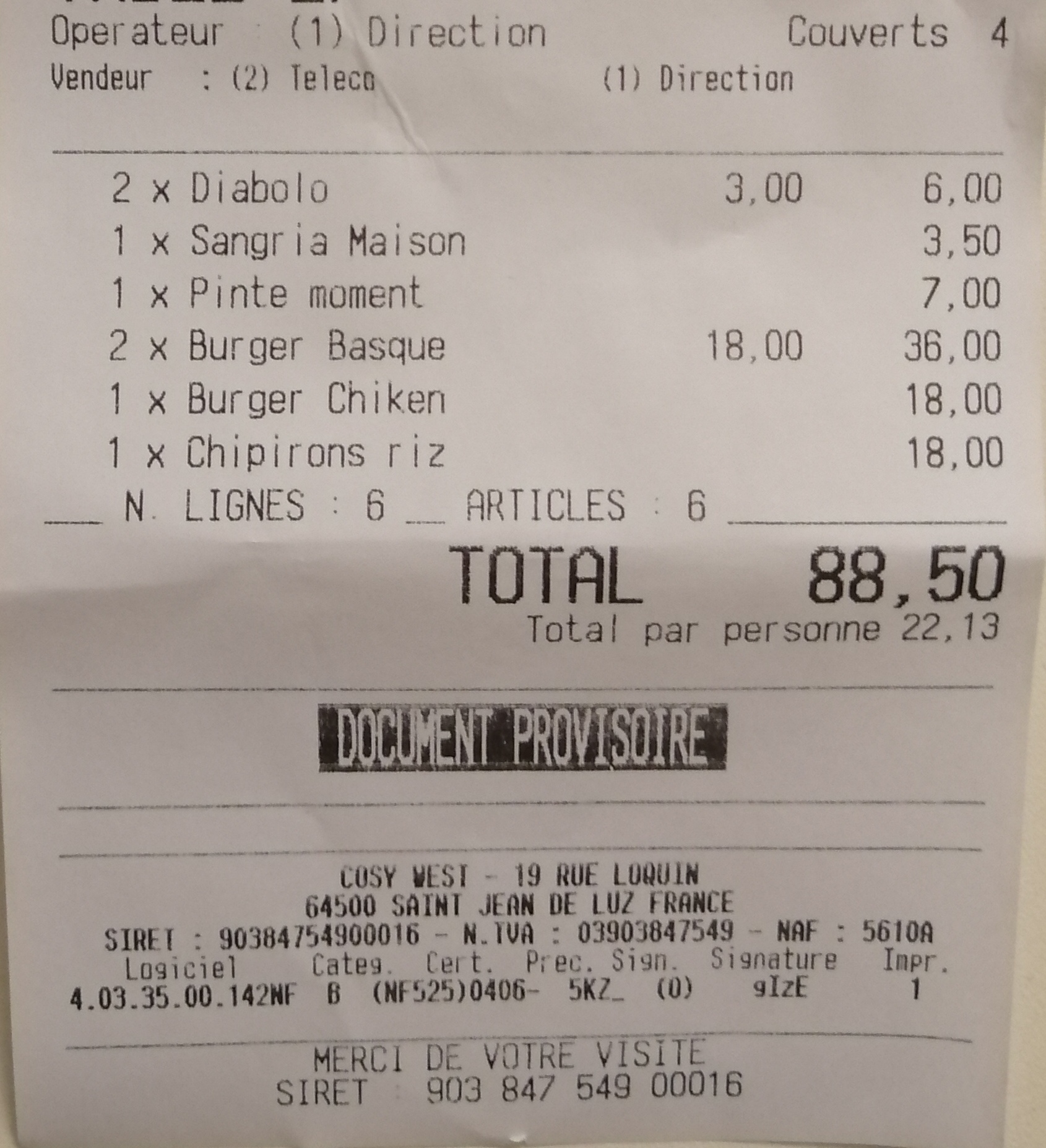 Nous sommes tombés par hasard sur ce restaurant sans savoir qu'il était numéro 1 dans le classement des restaurants à Saint Jean de Luz. Et nous avons eu la chance de pouvoir nous y installer tout de suite, à 2, sans réservation. Les burgers étaient excellents, avec des frites de patate douce extras. Accueil sympathique, bonne continuation !