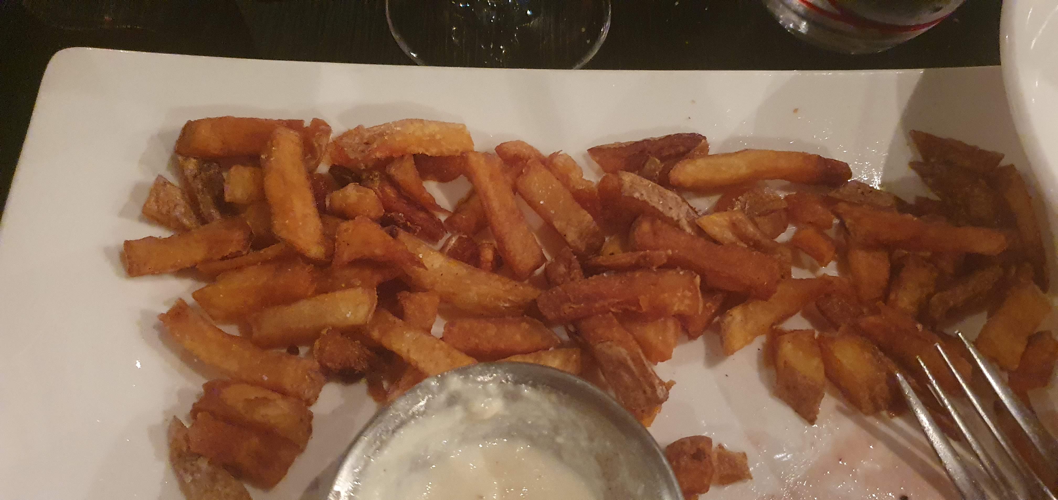 Frites pas cuites de l'intérieur petite pause avant manger salade je discute toujour assis a table avec amis et assiette disparue Serveur à pas demandé si j'avais finit 😈 ou si ça allais Déçu surtout que ce n'est pas la première fois que nous y mangeons Après discussion avec amis Nous remarquons une forte baisse du service et de la qualité 😠