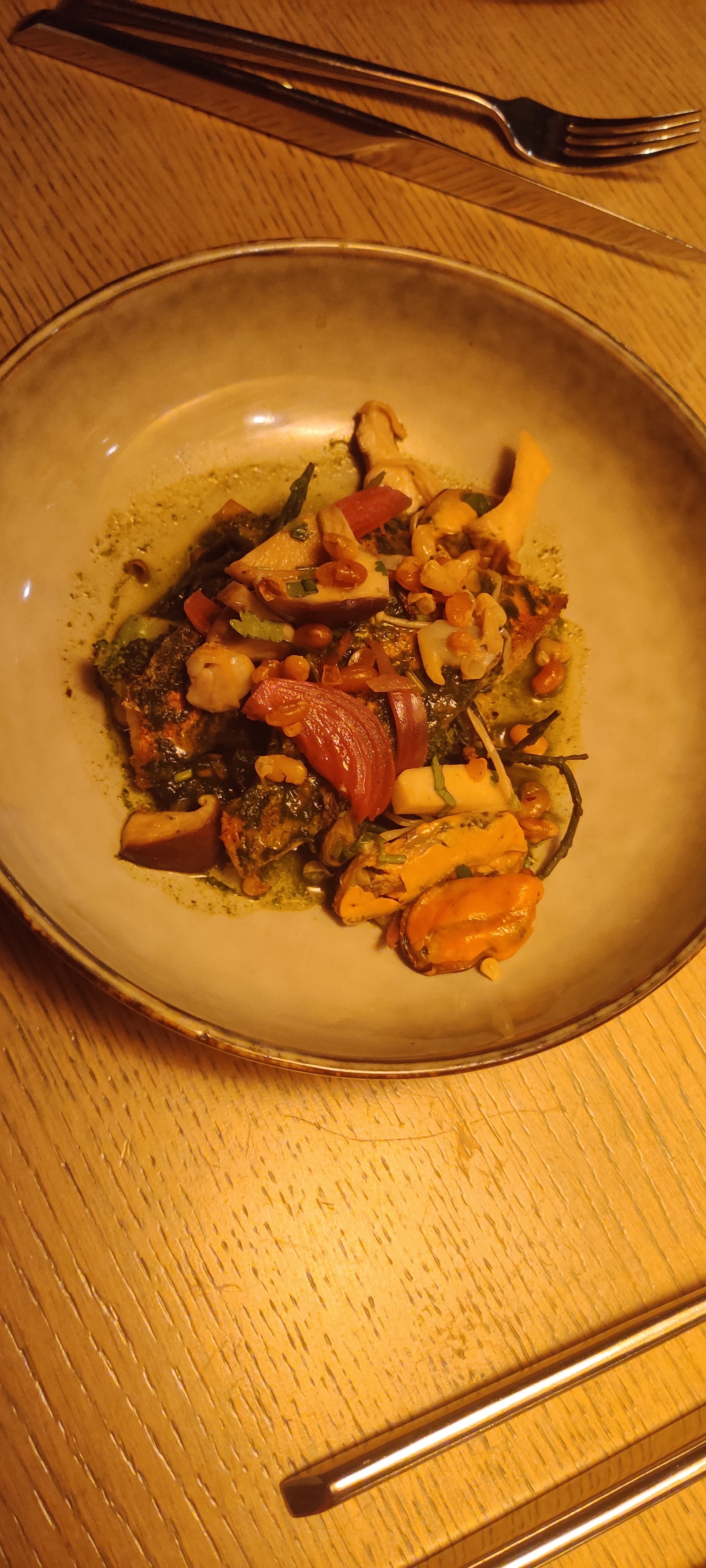 La nourriture est absolument excellente avec des mélanges de saveurs parfois inattendus et le rapport qualité/prix incroyable. On ressort rassasié. Le cadre est également vraiment super. Quelques bémols : - le service n'est pas à la hauteur (devoir chercher le serveur pour ravoir du pain ou du vin, coup de coude du serveur de la table derrière, pas vraiment aimable en soit) - beaucoup de plats contiennent des champignons ce qui peut être regrettable si l'on n'aime pas - les amuses bouches sont tous à base de truffe ce qui peut être regrettable également - la crème brûlée en dessert était largement en dessous du reste (consistance étrange et couche de praliné qui n'apporte rien), dommage de finir le repas là-dessus J'y retournerai sans aucun doute mais en sachant quoi prendre et quoi attendre du service !
