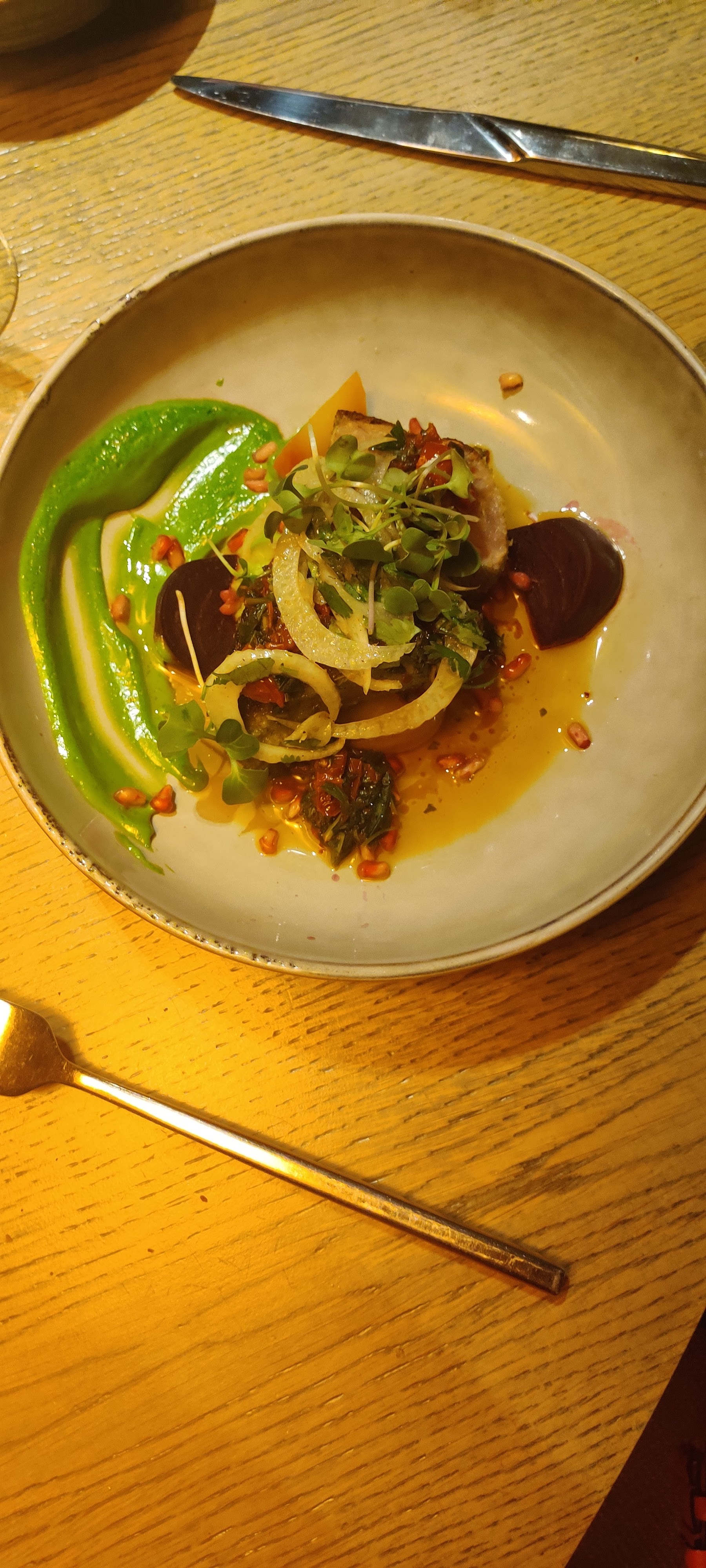 Beau restaurant, ambiance très sympa. Bon service. Les plats étaient très beaux, mais malheureusement les saveurs ne se mariaient pas. Il y avait trop de saveurs différentes dans un plat et c'était très compliqué, je ne comprenais presque aucun des plats. Les desserts étaient bons cependant.