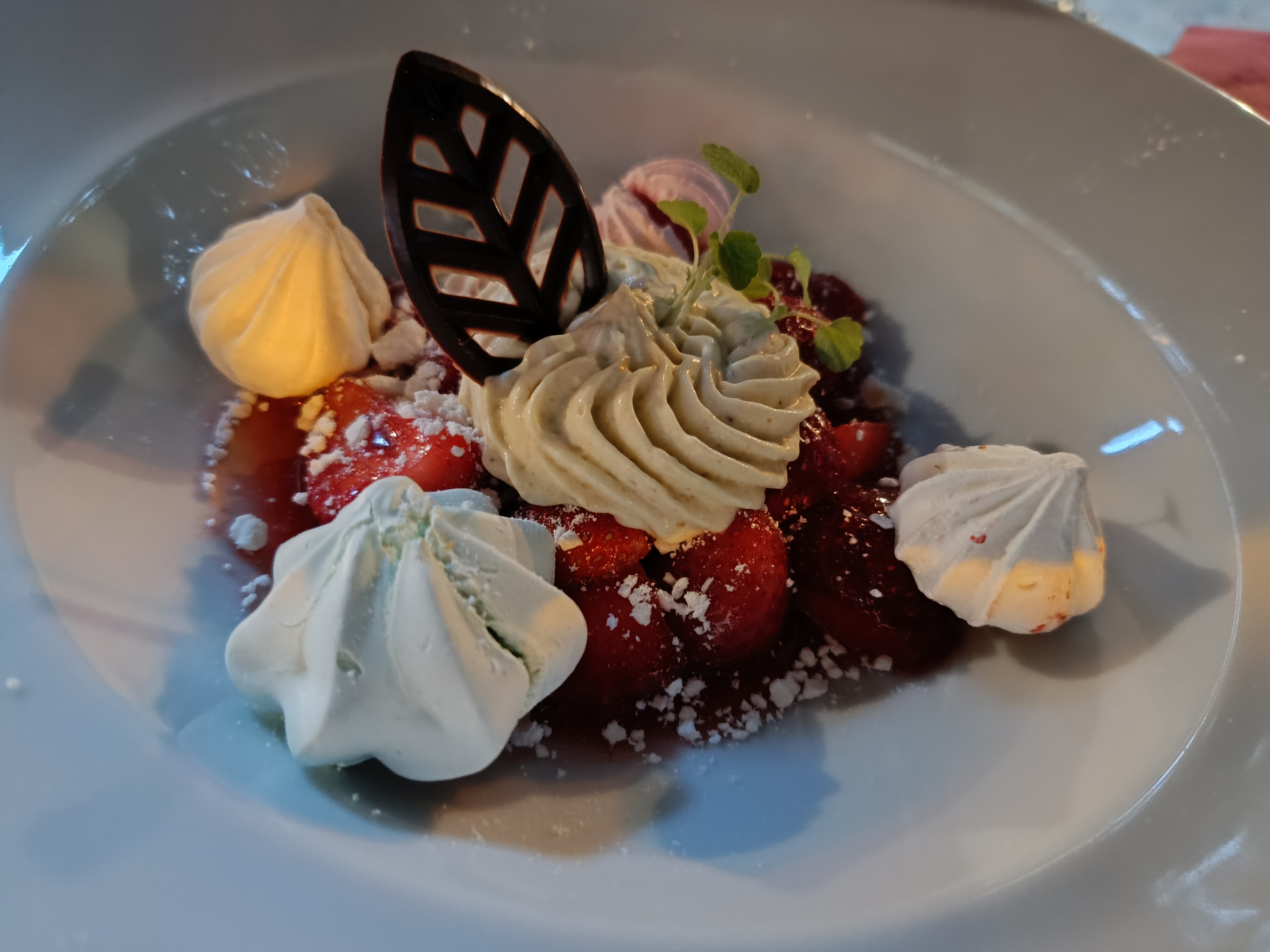 De l'entrée au dessert tout était excellent. Seul bémol les couverts, leur forme carrée très étroite ne facilite pas la préhension de l'objet, en particulier les fourchettes.