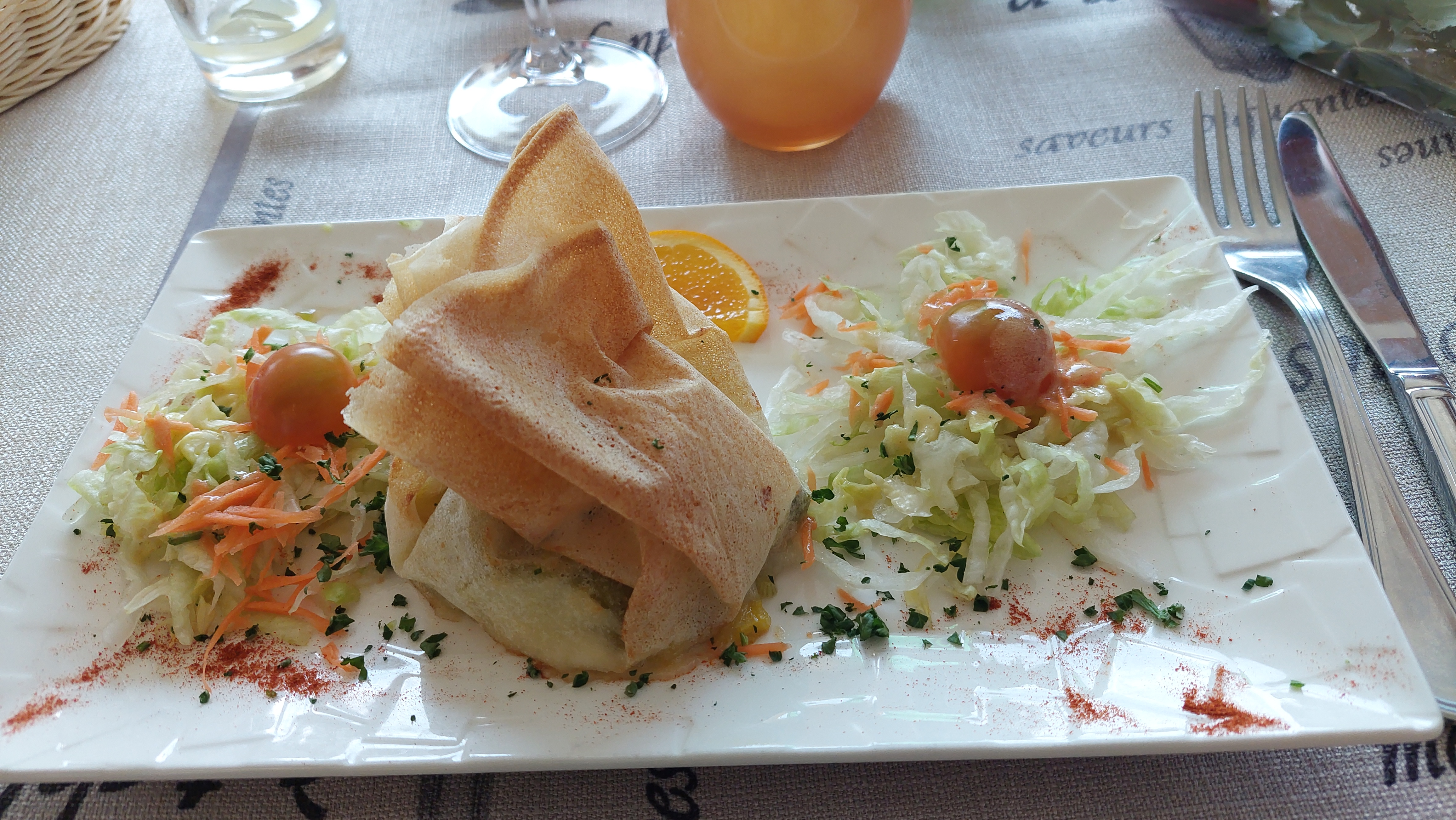 De la vrai cuisine avec des produits frais très bon et très copieux super accueil avec une vue magnifique