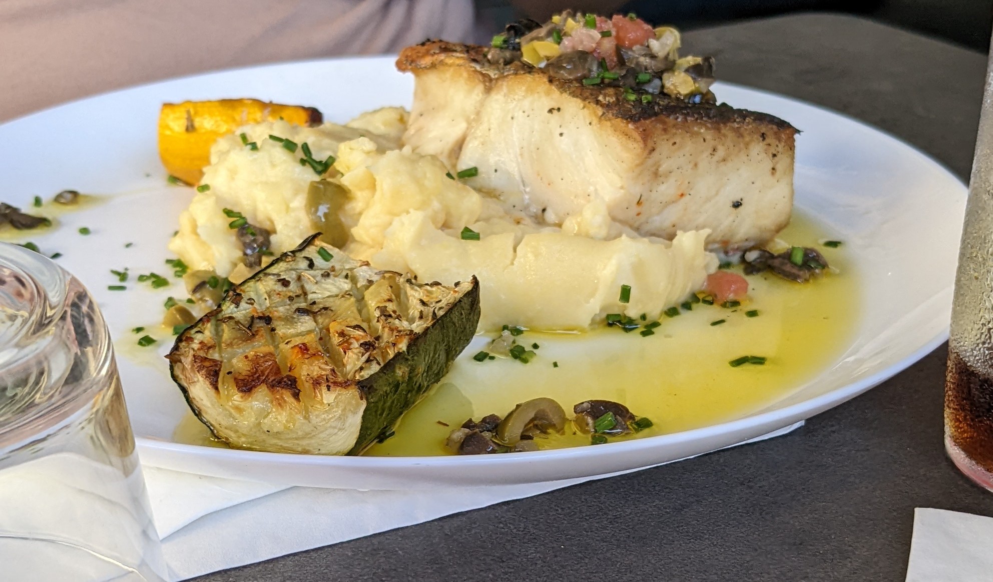 Très belle expérience . Passé par hasard . Serveuse agréable. Je ne regrette pas du tout ! houmous en entrée excellent avec pain pita . Et le filet de loup juste succulent,je recommande sans hésiter. A bientôt 😉. Merci