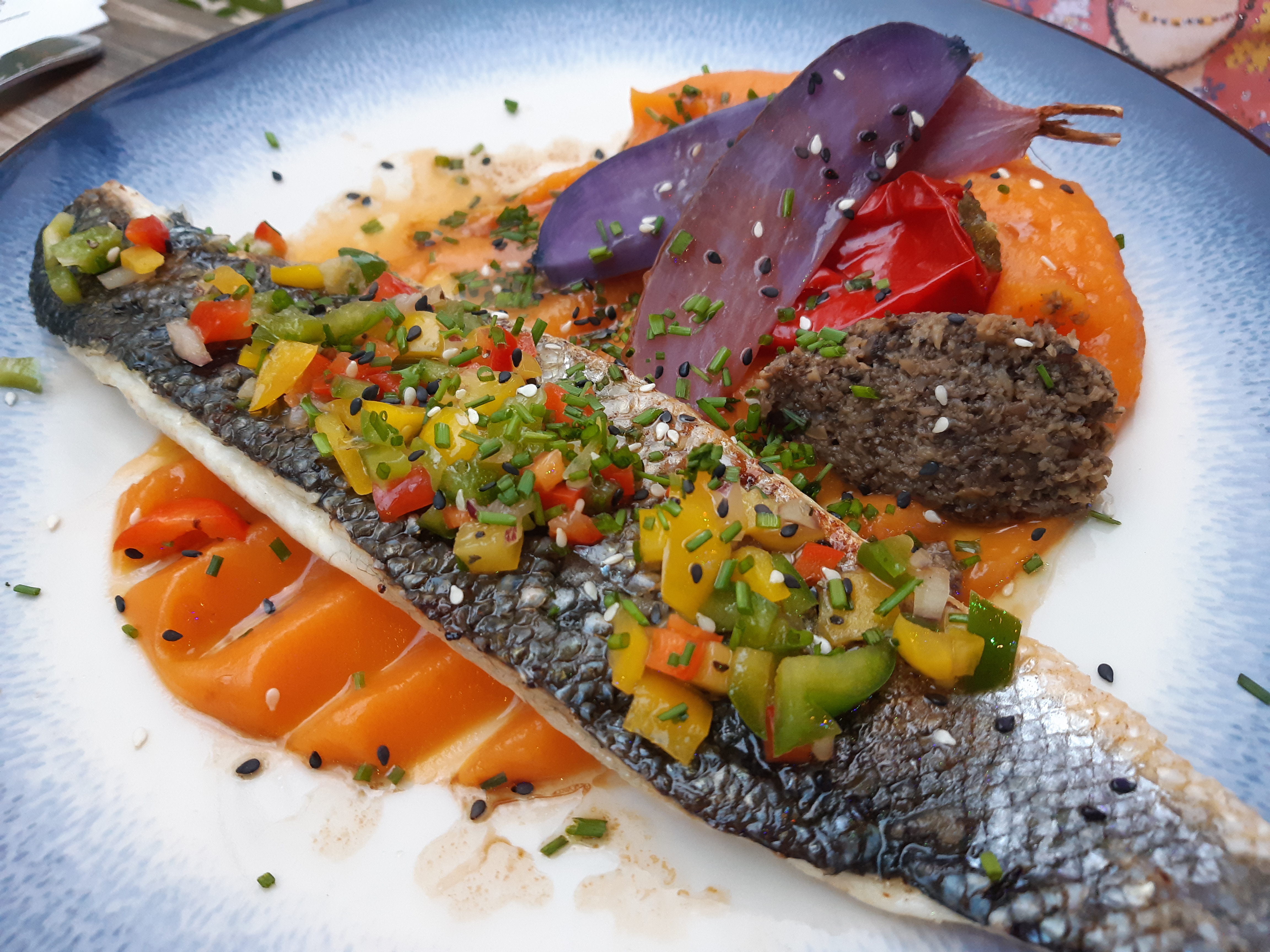 Le plat était un peu décevant, même si la daurade était délicieuse, j'aurai bien aimé plus de légumes dans mon plat. Je me suis régalée au dessert !