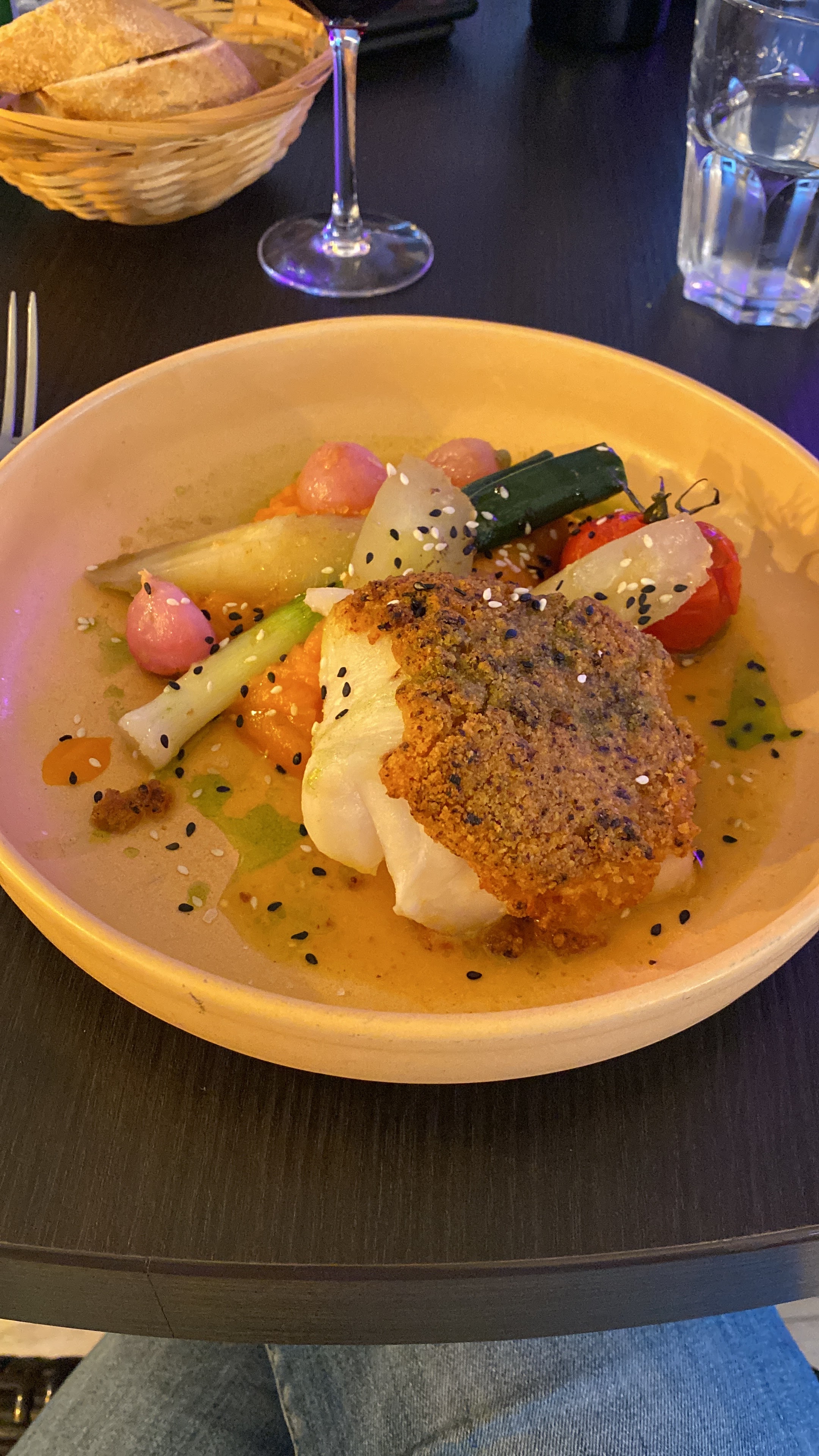 Accueil et service hyper chaleureux !! Les plats sont bons et présentation très soignée… Nous avons pris un Dos de cabillaud façon crumble👌👌 magnifique Je recommande !!!