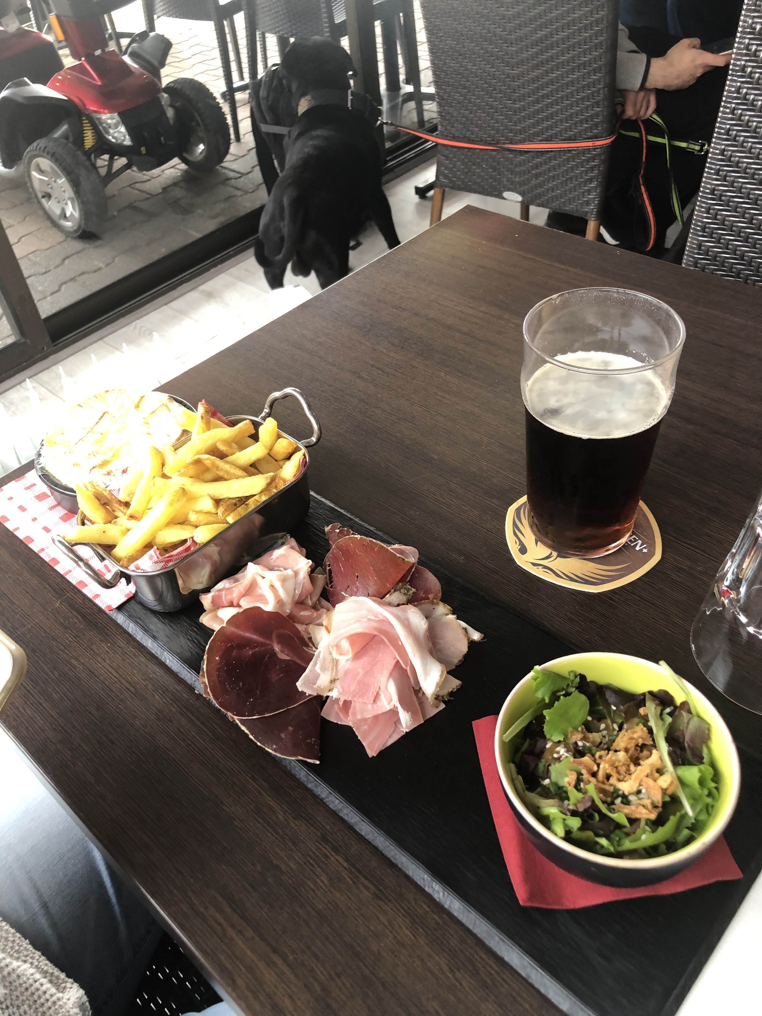 Malgré un très jolie cadre avec la musique nous avons été très déçu. Pas mal d'attente ,obliger de demander 2 fois une carafe d eau ainsi qu'un pichet de vin . Frite soi disant maison mais ..... la salade médiocre. Nous n étions que 2 et nous sommes passer inaperçu, on ne nous a pratiquement pas adresser la parole. Donc déçu je ne recommande pas .