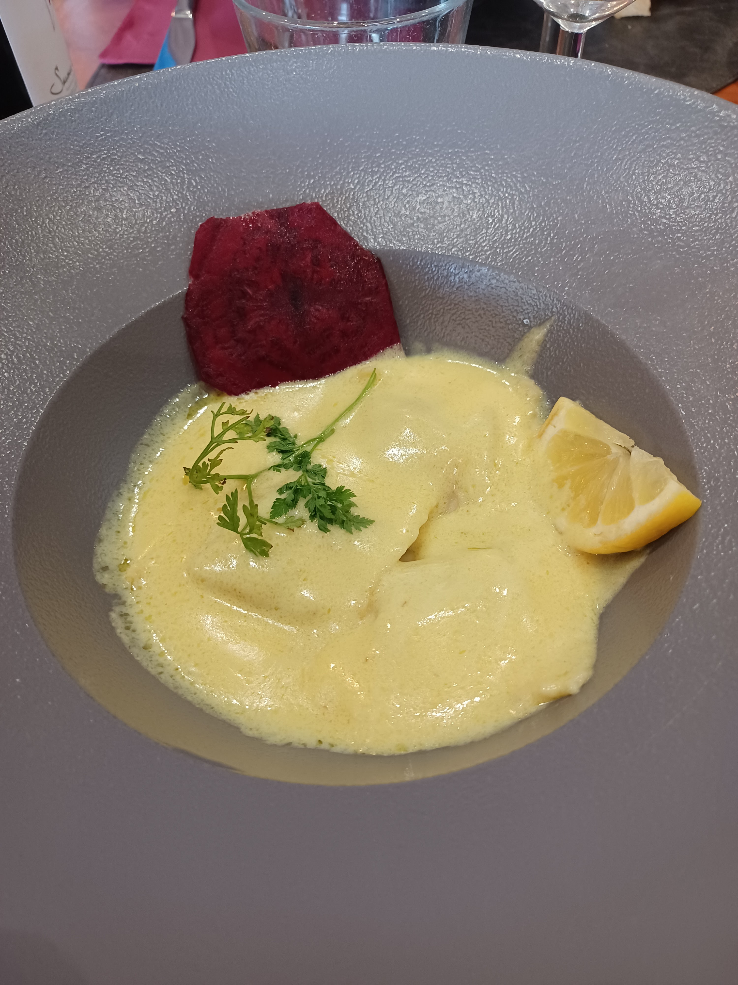 Belle découverte... enchantement des papilles ! Service très agréable, et cuisine à la hauteur du début à la fin! Merci Denis pour votre cuisine!bon rapport qualité -prix...... très gentille attention de la bougie pour l anniversaire de ma maman !