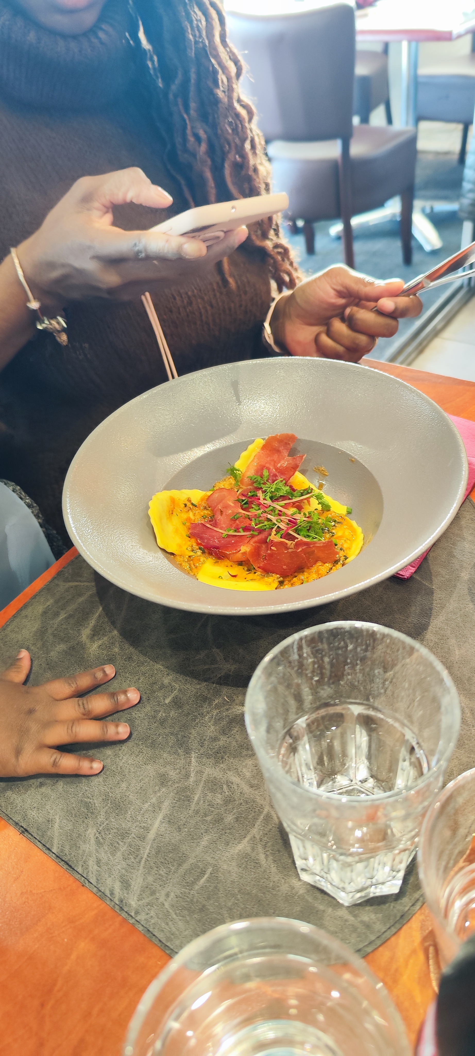 Nous avons mangé en extérieur ce dimanche de la fête des mamies. Très bien accueilli, agréable. On a réservé en amont (preferable). Le soleil était au rdv mais nos papilles ont appréciés les différentes saveurs