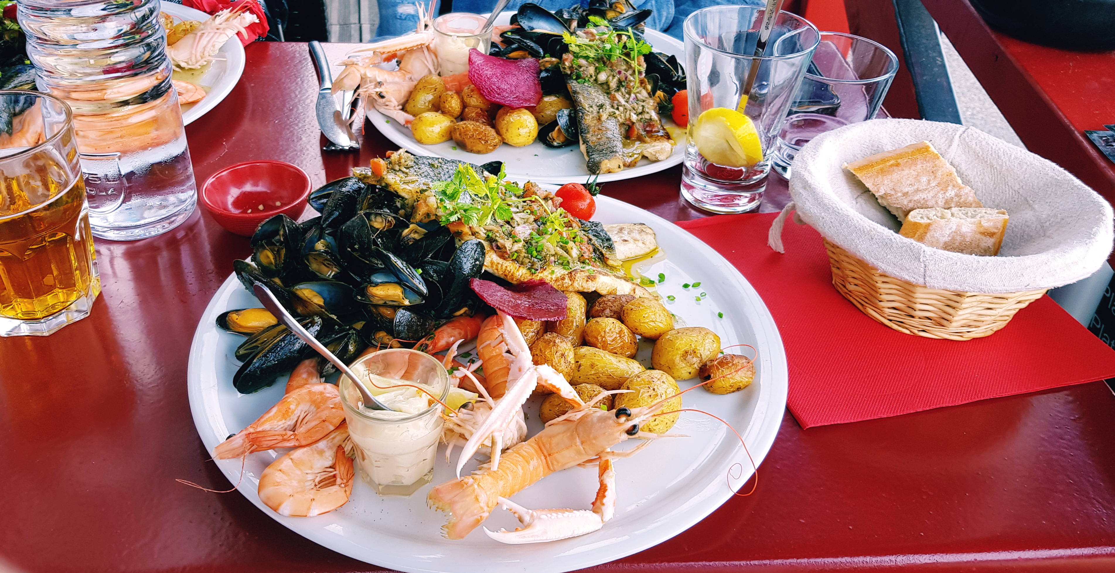 Ambiance agréable, belle vue sur le port, assiette copieuse, poissons et crustacés frais.