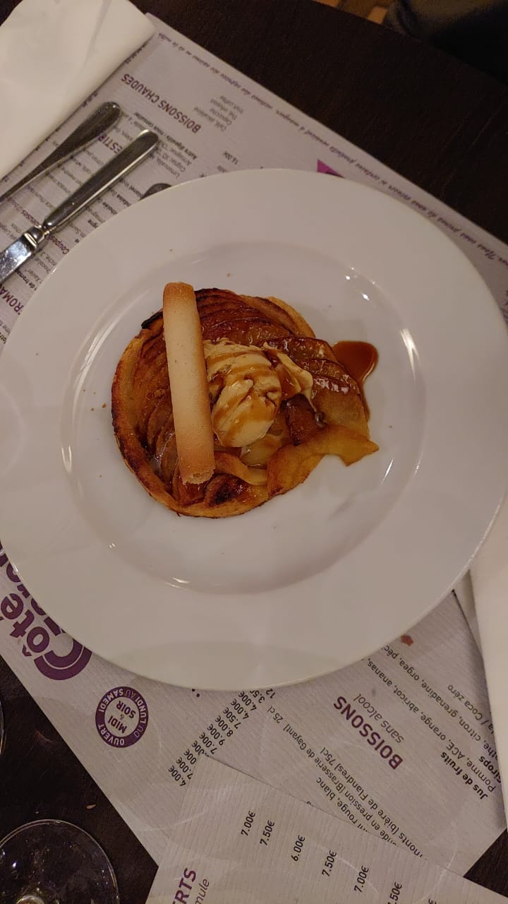 service au top la côte de bœuf est un delice comme le reste de la carte bémol toujours pas de sorbet pomme arrosé Calvados 🫡