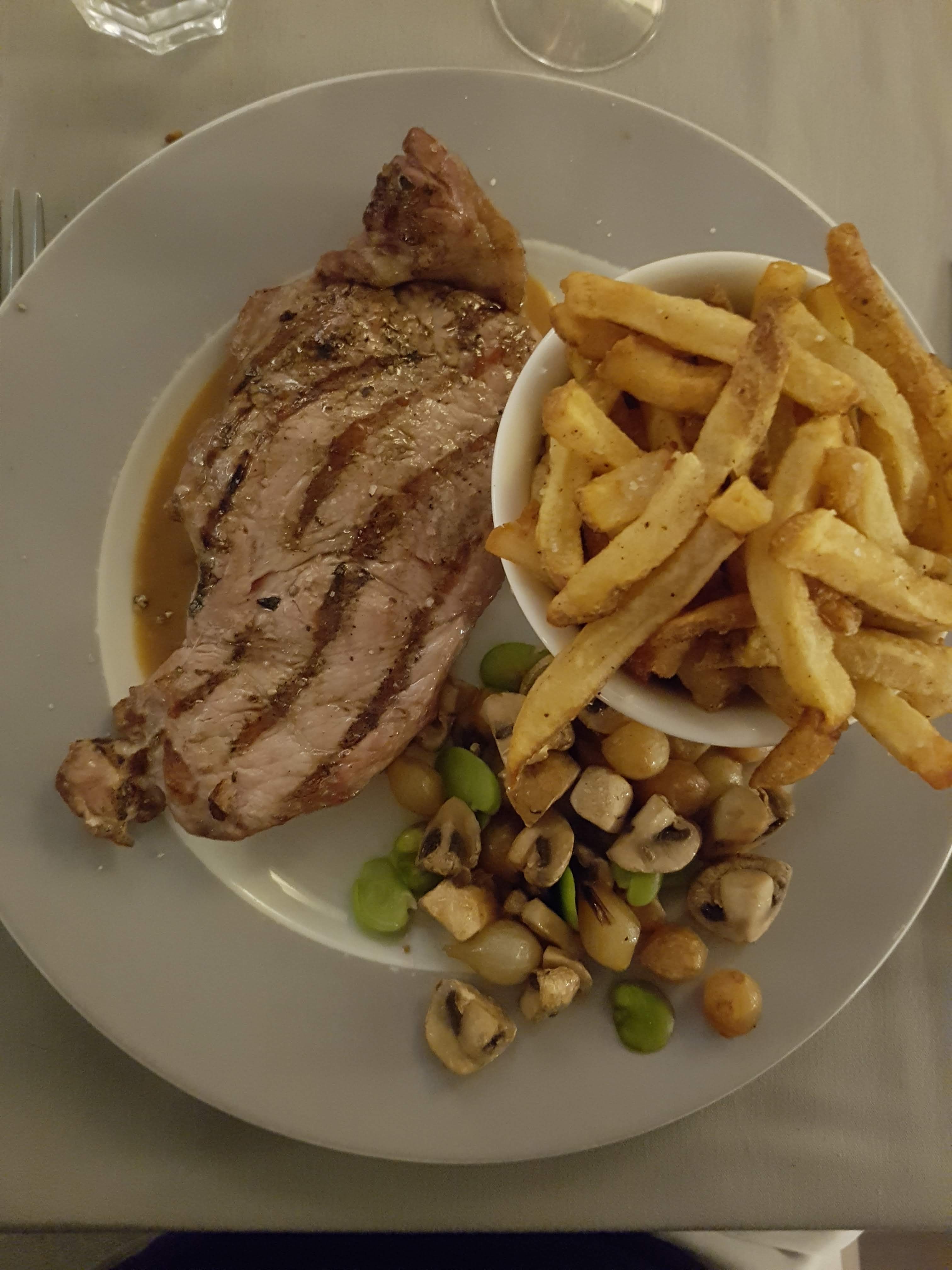Moyen… très cher pour ce que c’est, sauce au poivre même pas faite maison (industrielle), viande de bœuf pas agréable à manger, non tendre, frite pas faite maison, très déçue. 35 euros sans dessert, sans entrée…