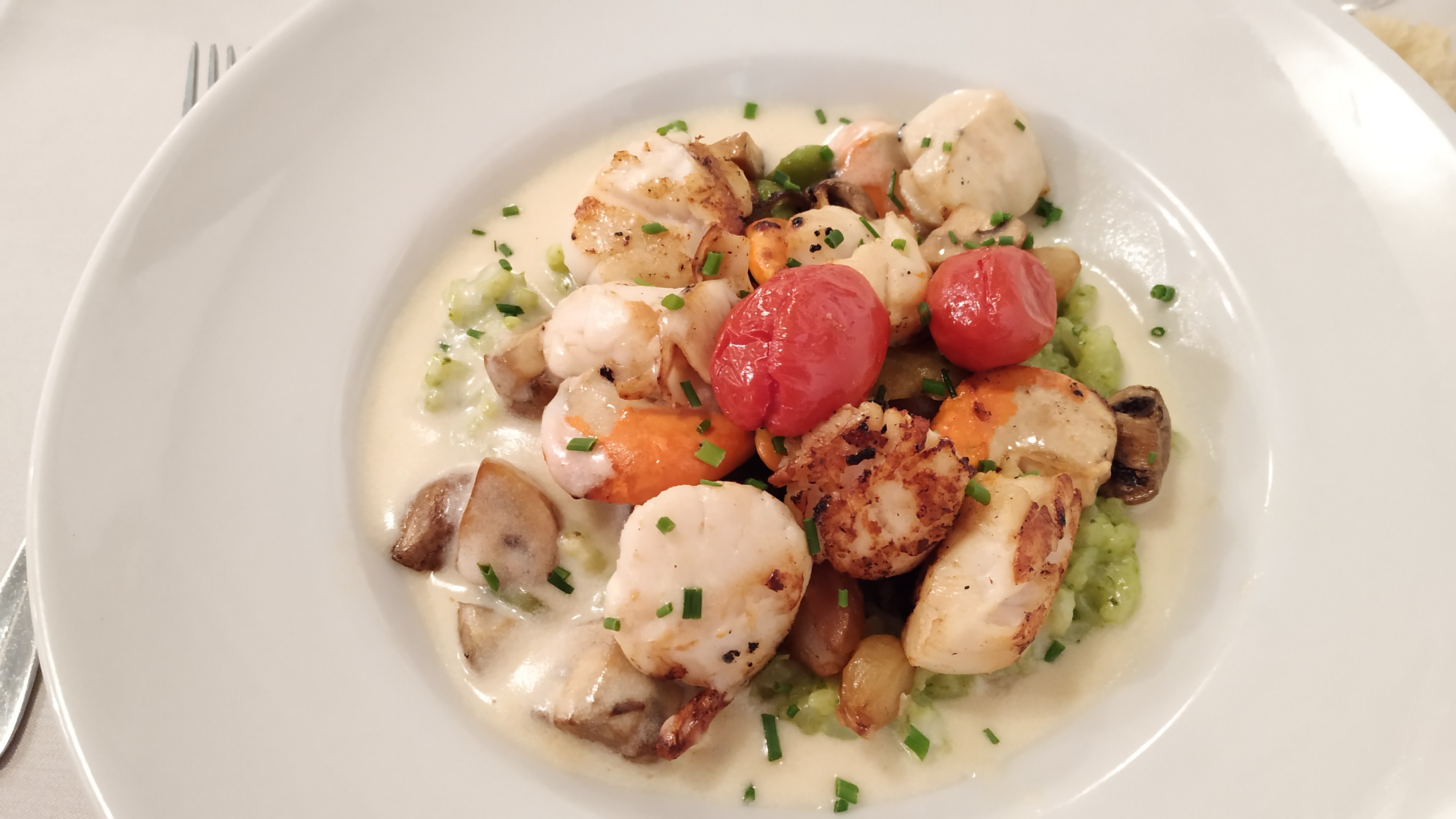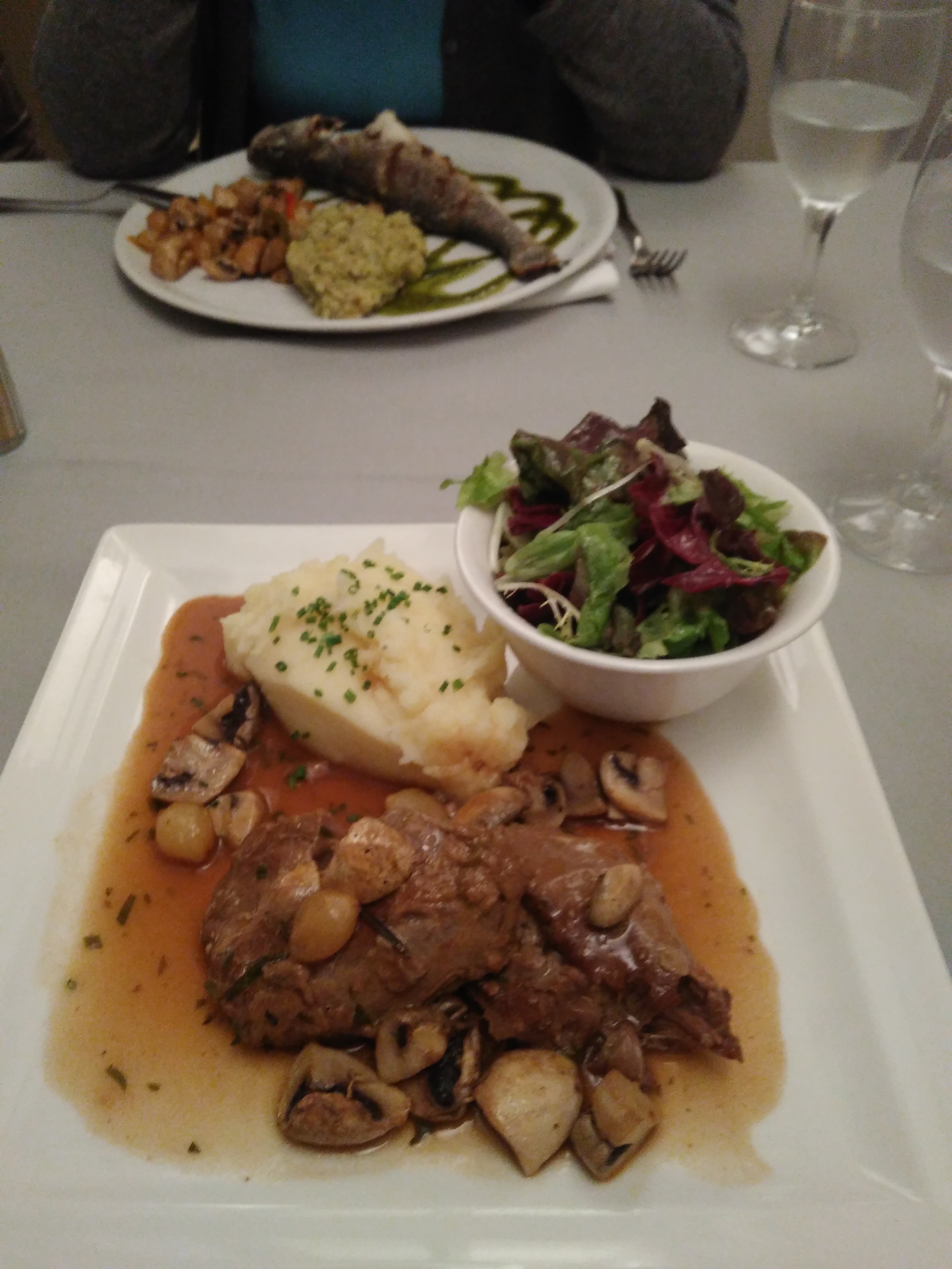 Un délice , en entrée oeuf poché à la crème de champignon , ensuite on a pris épaule d'agneau, cuisson parfaite , et thon rouge parfait aussi, un risotto crémeux à souhait. Un serveur , au petit soin et service rapide .