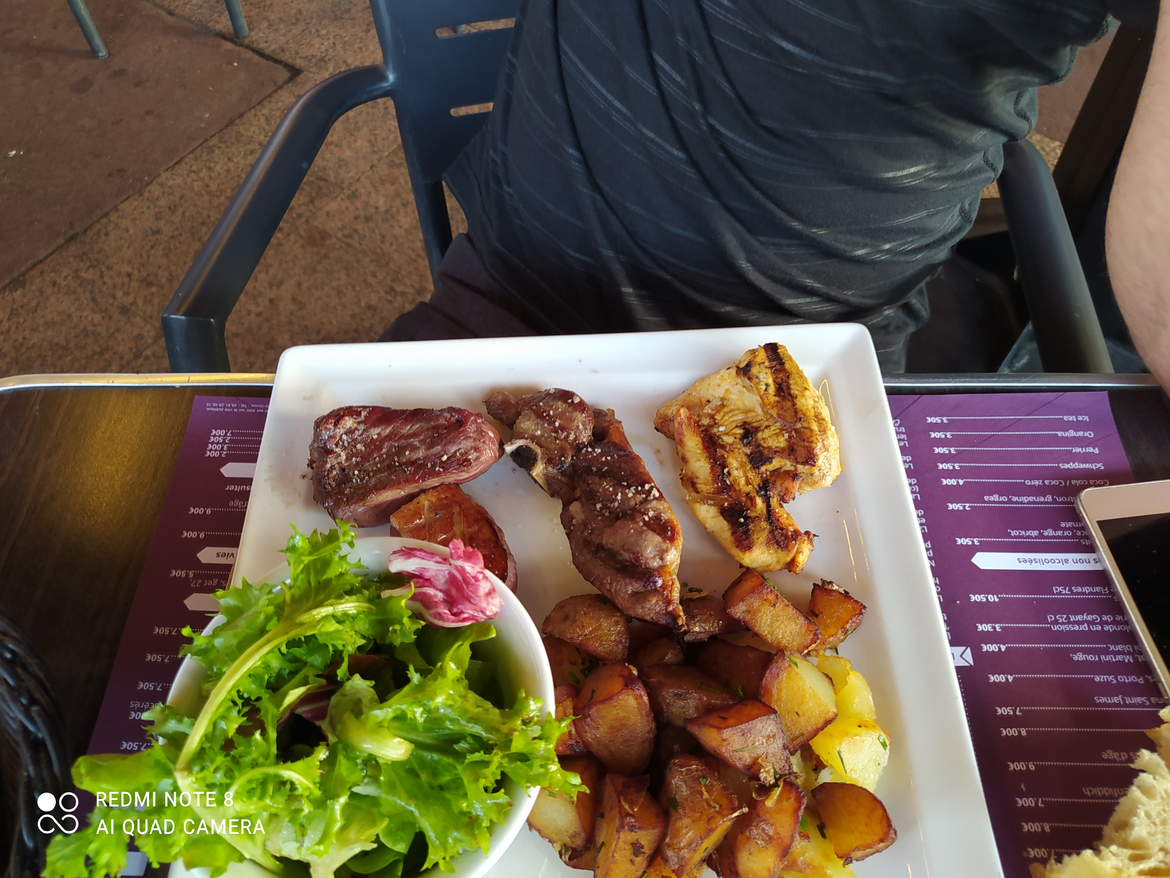 Cadre très sympathique avec une terrasse sans trop de vis à vis.... Prix correct au vue de la concurrence avoisinante, mais la viande n'est pas vraiment au rendez-vous pas de goût même étant cuite au feu de bois ainsi qu'un accompagnement pas ouf tel la sauce avec la viande qui est juste sans goût. Bref des prix assez attractif mais il ne faut pas être trop compliqué sur la qualité proposée... Je tiens a dire que je suis un peu pénible niveau nourriture....
