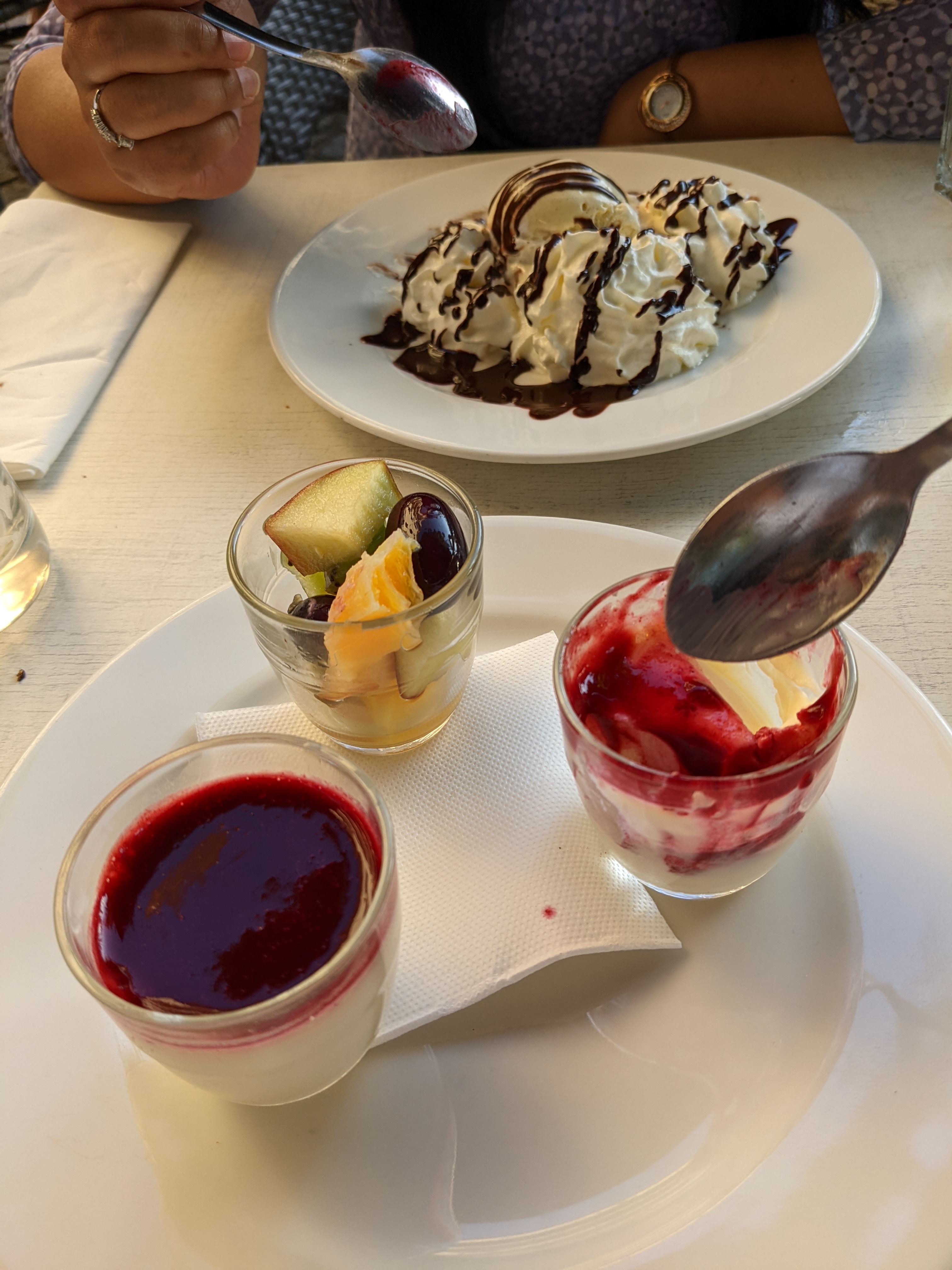 Loved the food. Nous avons pris une pizza végétarienne, millefeuille de légumes et buffala ; et quelques desserts. Le service était bon, chaleureux et jolies serveuses. Je ne comprends pas pourquoi il a de mauvaises critiques, J'ai visité un vendredi soir. La séance était pleine sur la terrasse.