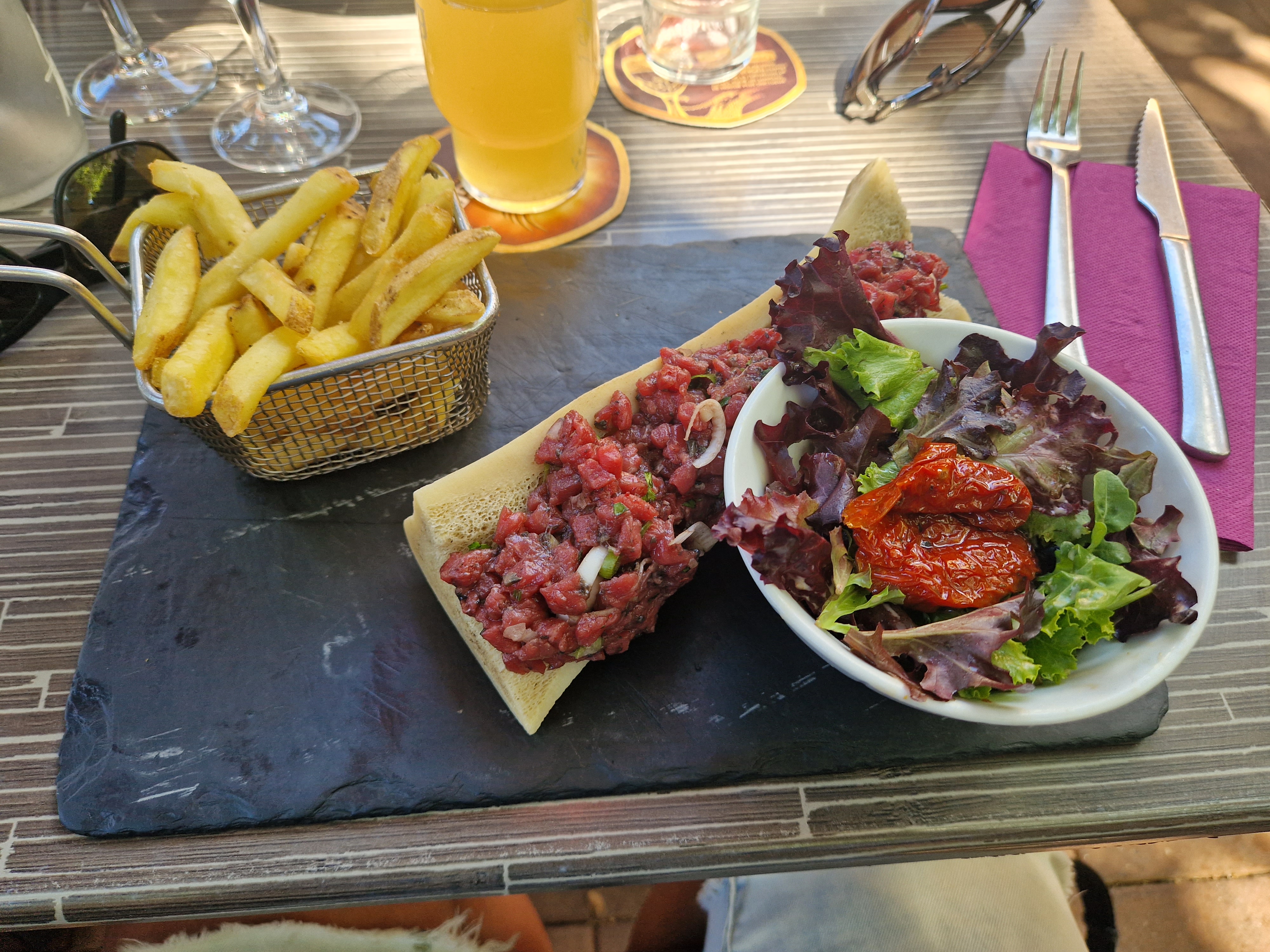Dans l’ensemble pas trop mal mais le tartare mal servi et mal présenter voir minable pour 18 euro dommage …… a méditer pour la direction