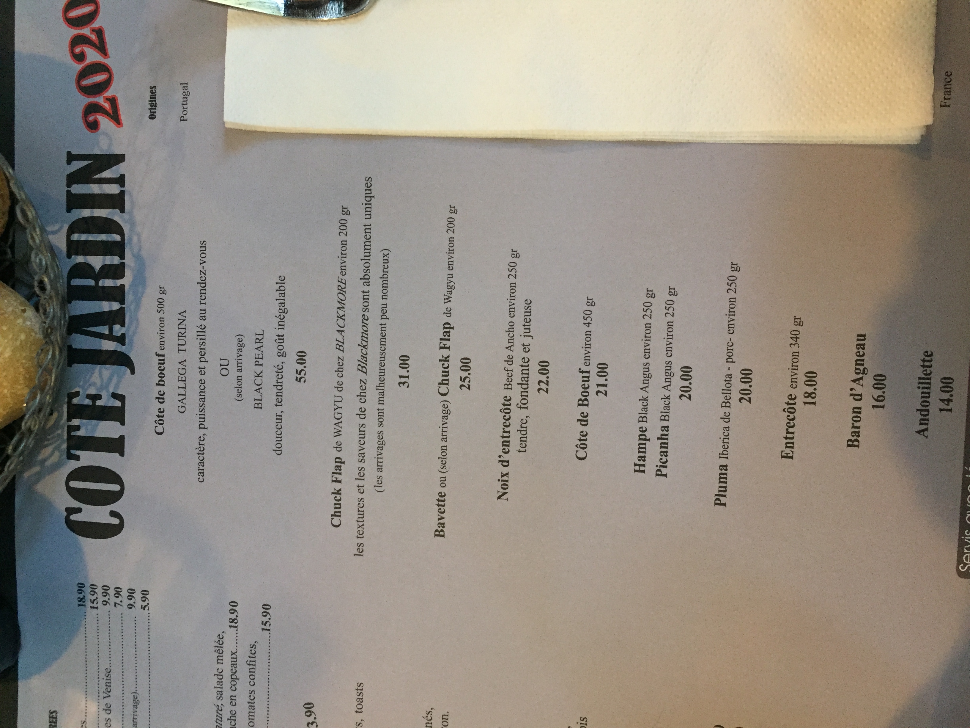 Un très bon restaurant, surtout pour ceux qui aiment les bonnes pièces de viandes. Je regrette juste qu’il n’y ai pas de partie plus couverte car quand il ne fait pas très beau, ce n’est pas toujours agréable.
