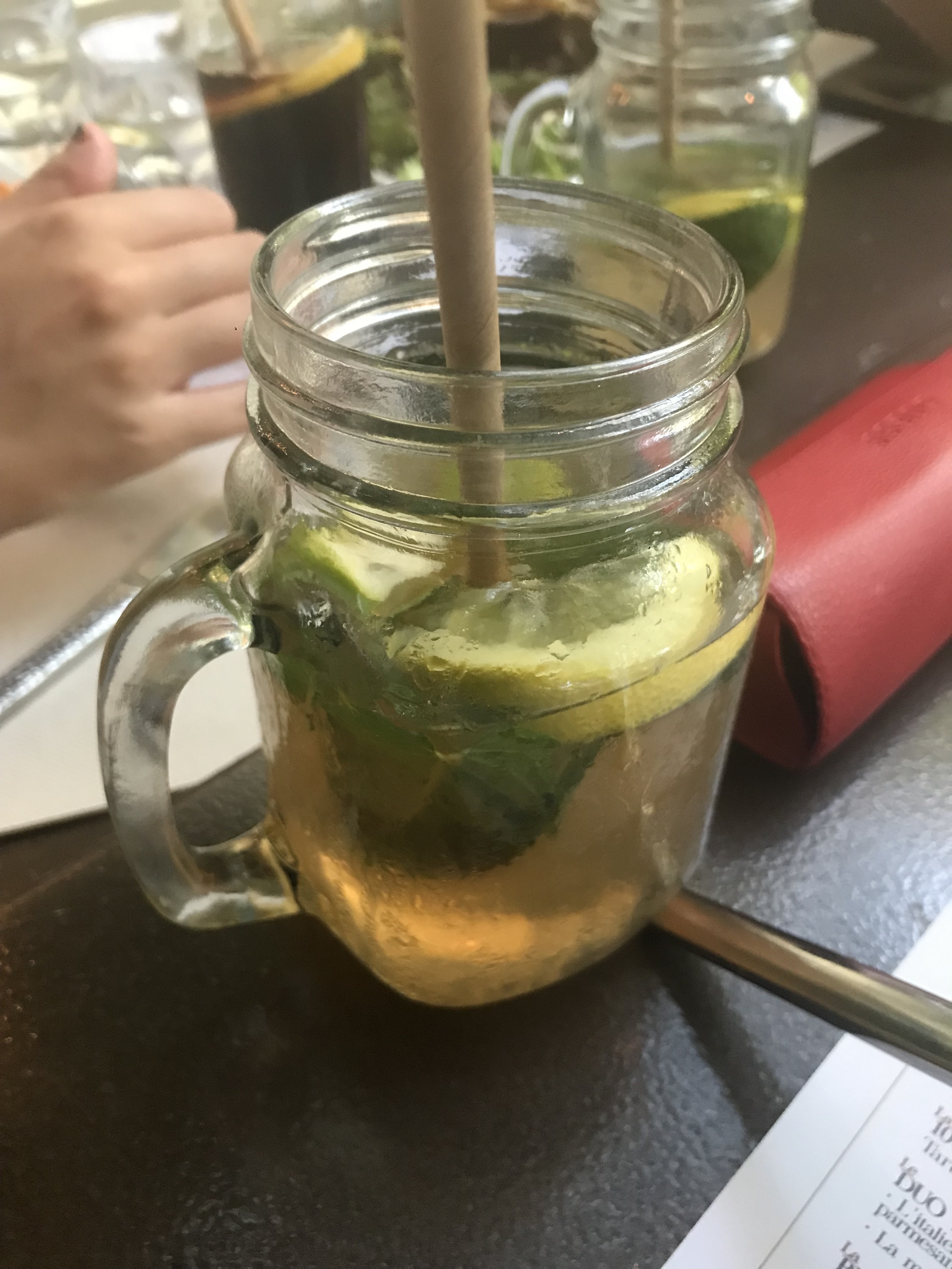 Retauration de type rapide, Succession de serveuses, aperitif baclé( mojito sans menthe avec du citron jaune et beaucoup de glacons) Viande sevie avec frites et salades..... Impossible de régler séparement les alcools.....