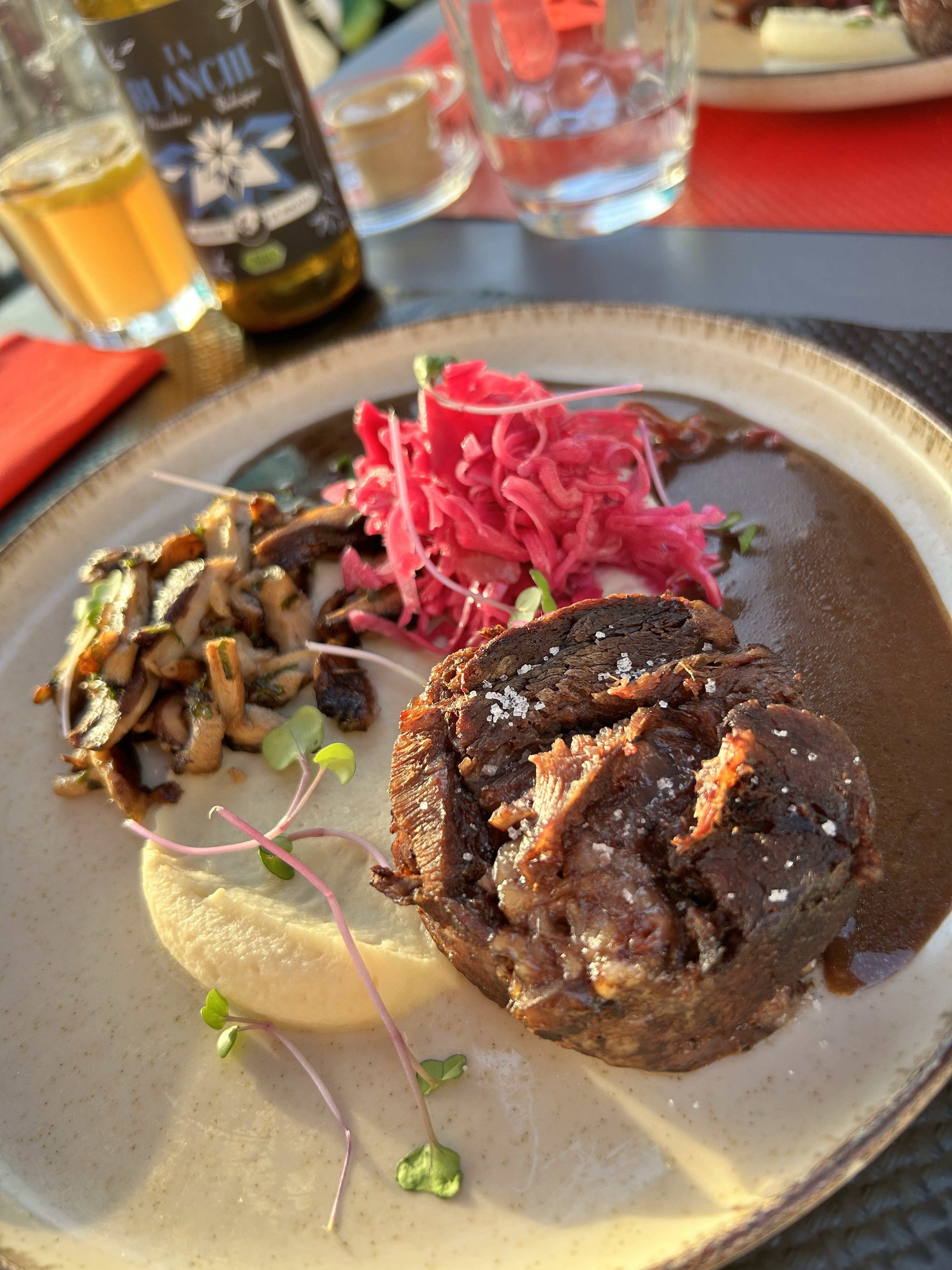 Ce restaurant est tout à fait charmant (et dans le coin, cette vue, ce standing et la qualité du menu dont une combinaison rare). Une option végétarienne (alléluia !!) Des mélanges de saveurs et textures qui ravissent les papilles. Le dessert : un délice (crémeux chocolat, marmelade d'abricots...) Une très belle et bonne adresse.
