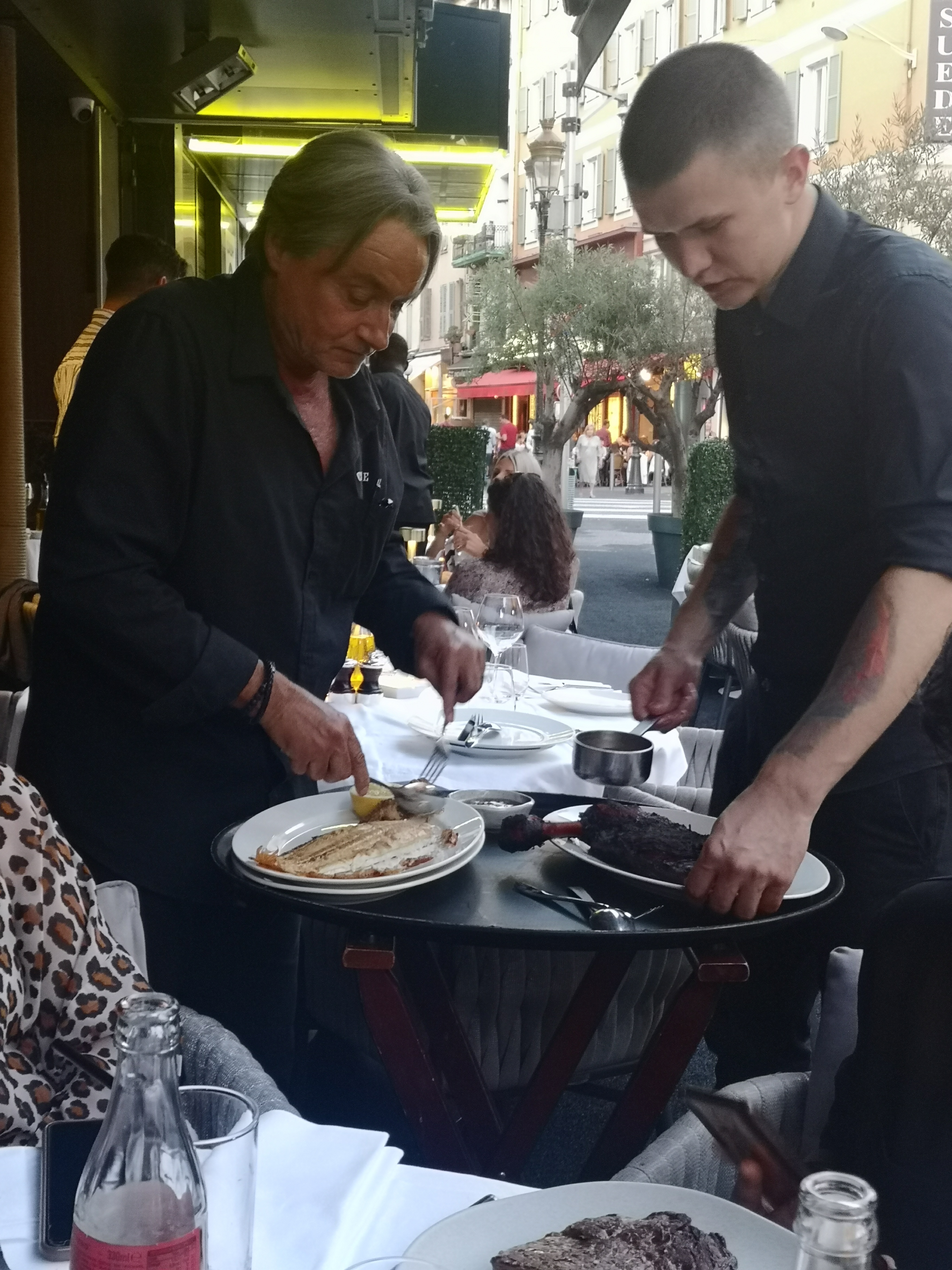Serveur à l’image du manager : service déplorable une attente interminable nous n’avons même pas pu prendre de dessert tellement l’attente était longue.mon verre était vide depuis bien une heure…on n’est jamais venu me demander si je souhaitais un nouveau cocktail ni même du vin. En plein mois de décembre on nous place à l’extérieur loin du chauffage avec un enfant de cinq ans. Le prix n’est pas un problème mais la moindre des choses et d’avoir un service de qualité lorsqu’on affiche ce genre de prix. le plat est effectivement bon mais c’était la seule chose positif dans ce restaurant Passez votre chemin, il existe de bien meilleur restaurant à Nice avec une aussi belle ambiance mais surtout un service beaucoup plus agréable. (Je tiens à préciser que je visite au minimum 7 restaurants par semaine )