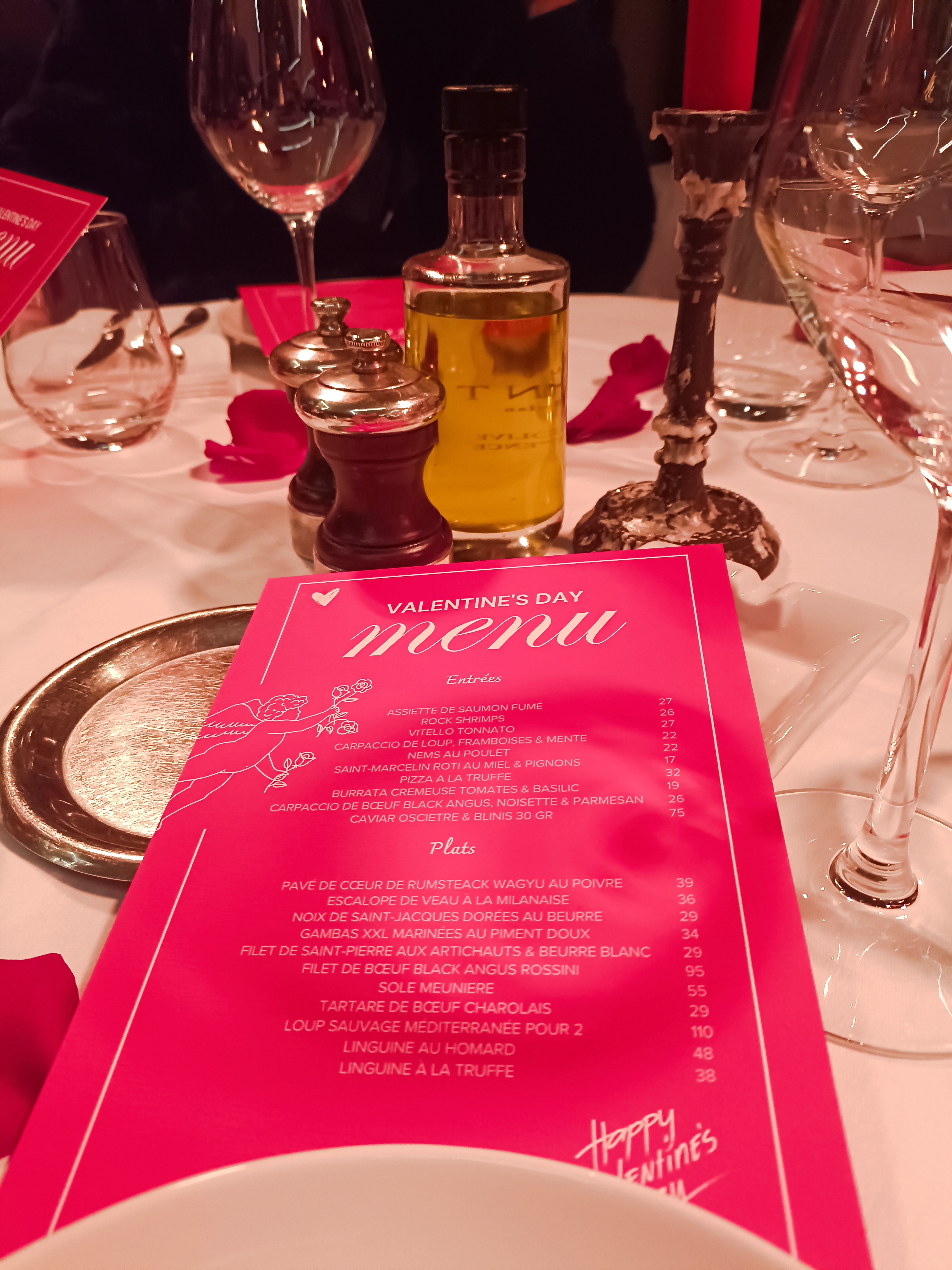 Très belle soirée de saint Valentin, un menu avec plusieurs choix, ce pendant beaucoup trop coûteux pour le contenu ! Expérience après plusieurs retours très décevant. Nous n'avons pas apprécié du tout que un Mr à forte corpulence ce permet en plein service de remettre à sa place notre serveur car il n'a pas compris le plat d'un client !! Serte il y a une différence, j'estime votre intervention vraiment déplacé surtout en plein service Mr . Niveau qualité prix vraiment trop honneur pour la quantité, cependant c'est Bon. Par contre pour une note à plus de 500€ ne pas offrir le café ou un digestif.. L'eau à 10€ je suis désolée ma il a pour moi c'est du vol. Je ne reviendrai pas.