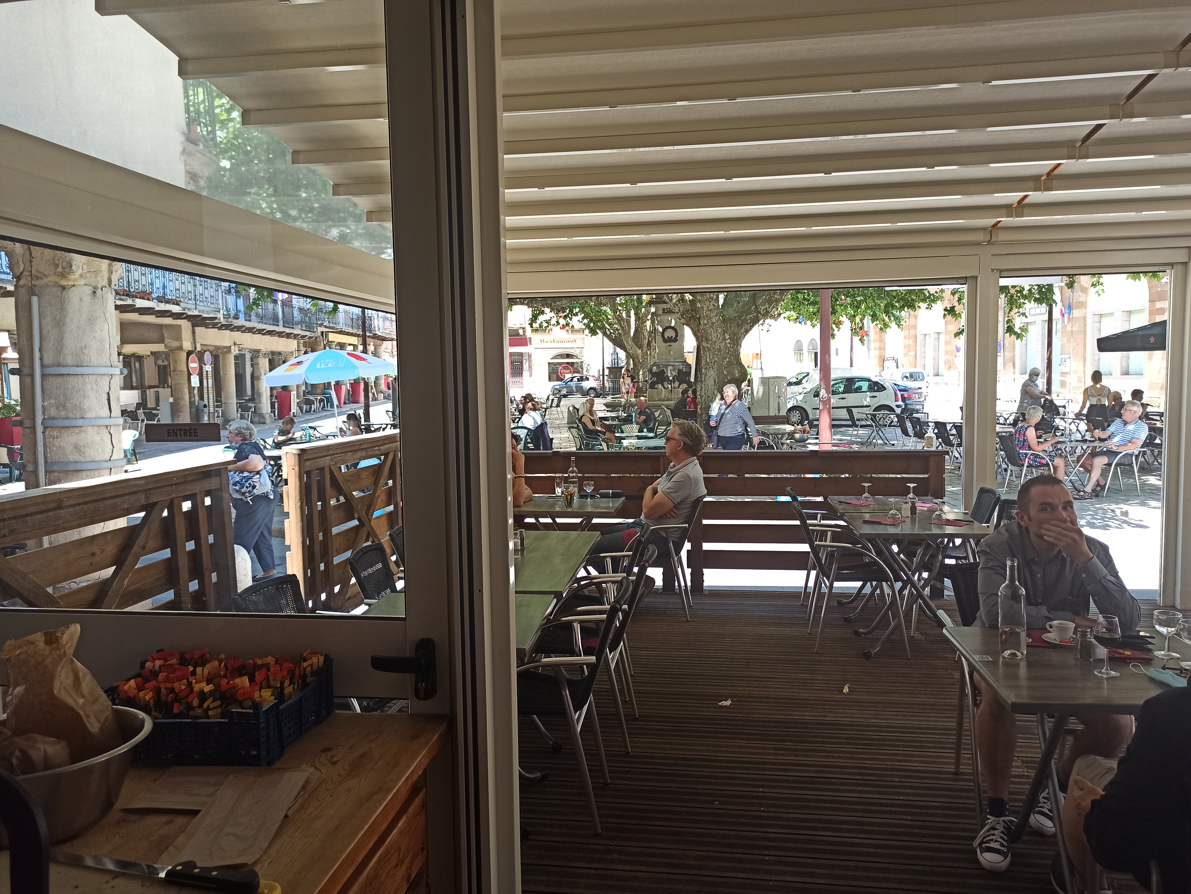 Une bonne adresse.. une place ombragé à midi.. la salade de thon mariné et la saucisse aligot etaient bonnes.. le service agréable.. à recommander pour manger le midi comme nous..