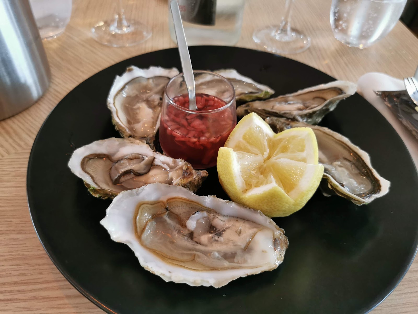 un restaurant au look bien sympa des mets raffinés des huitres delicieuses et meme une pre entrée pour patienter des serveuses tres souriantes et attentionnées ! des poissons delicieux ! un regal !