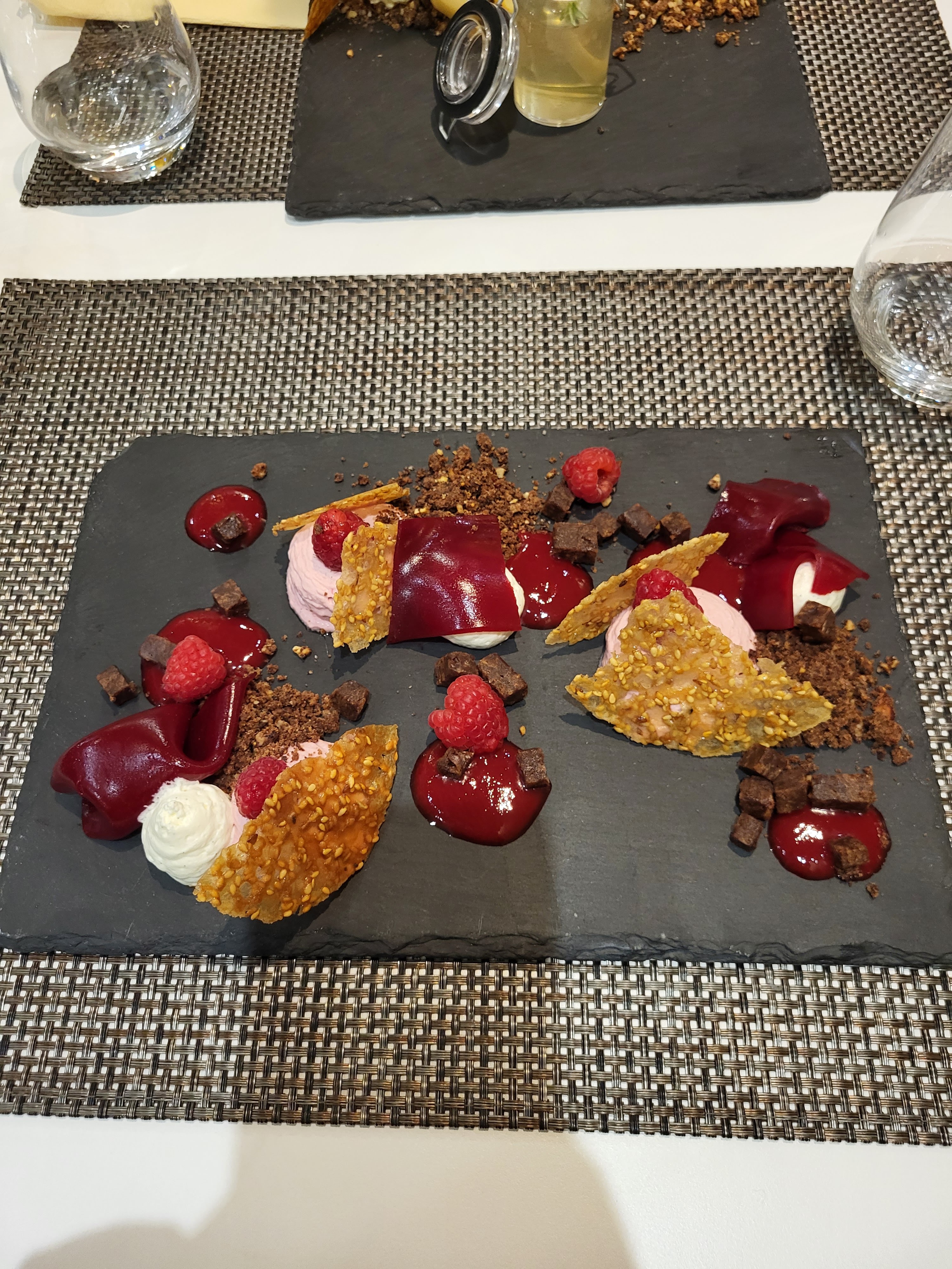 Repas excellent de l'amuse bouche au dessert ! Bravo au chef ! Dommage de nr pas avoir de nappe sur la table et des serviettes en papier, pas au niveau du restaurant