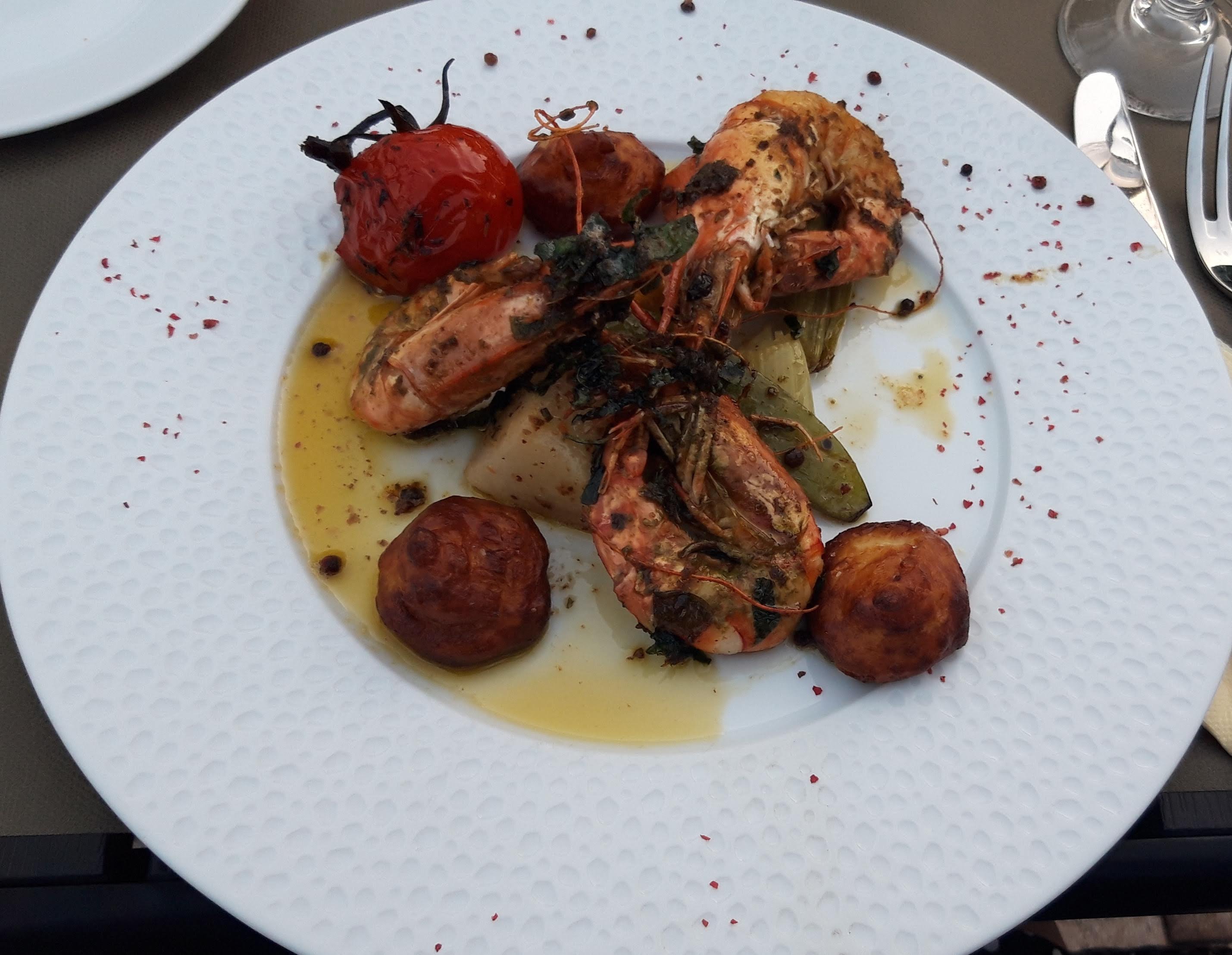 Diner agréable en bord de piscine, service attentionné, cuisine savoureuse sans être exceptionnelles (vin délicieux).