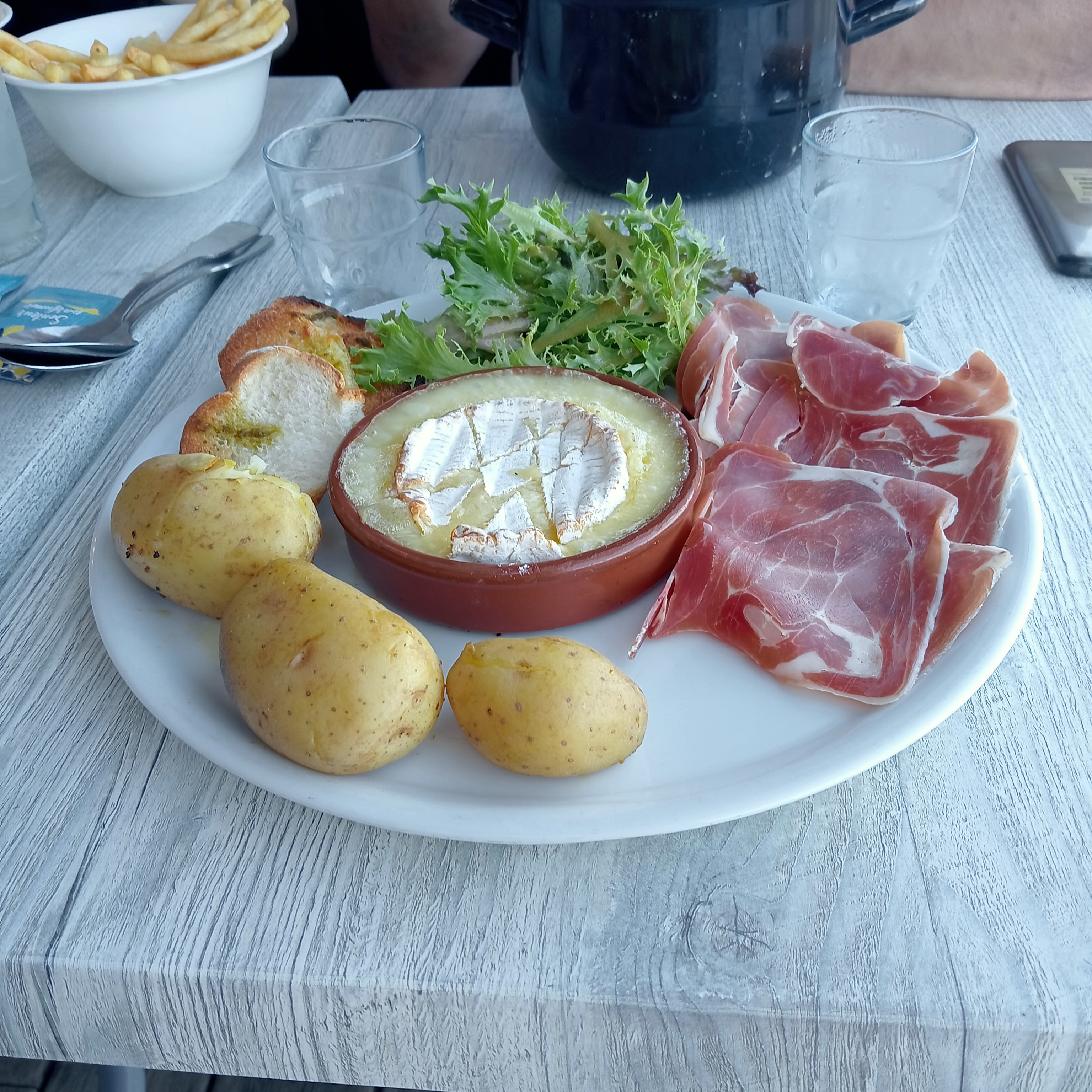 Camembert rôti très bon, ça change des moules frites ! Serveurs super sympas et deconneurs, bref moment fort sympathique 👍🏻