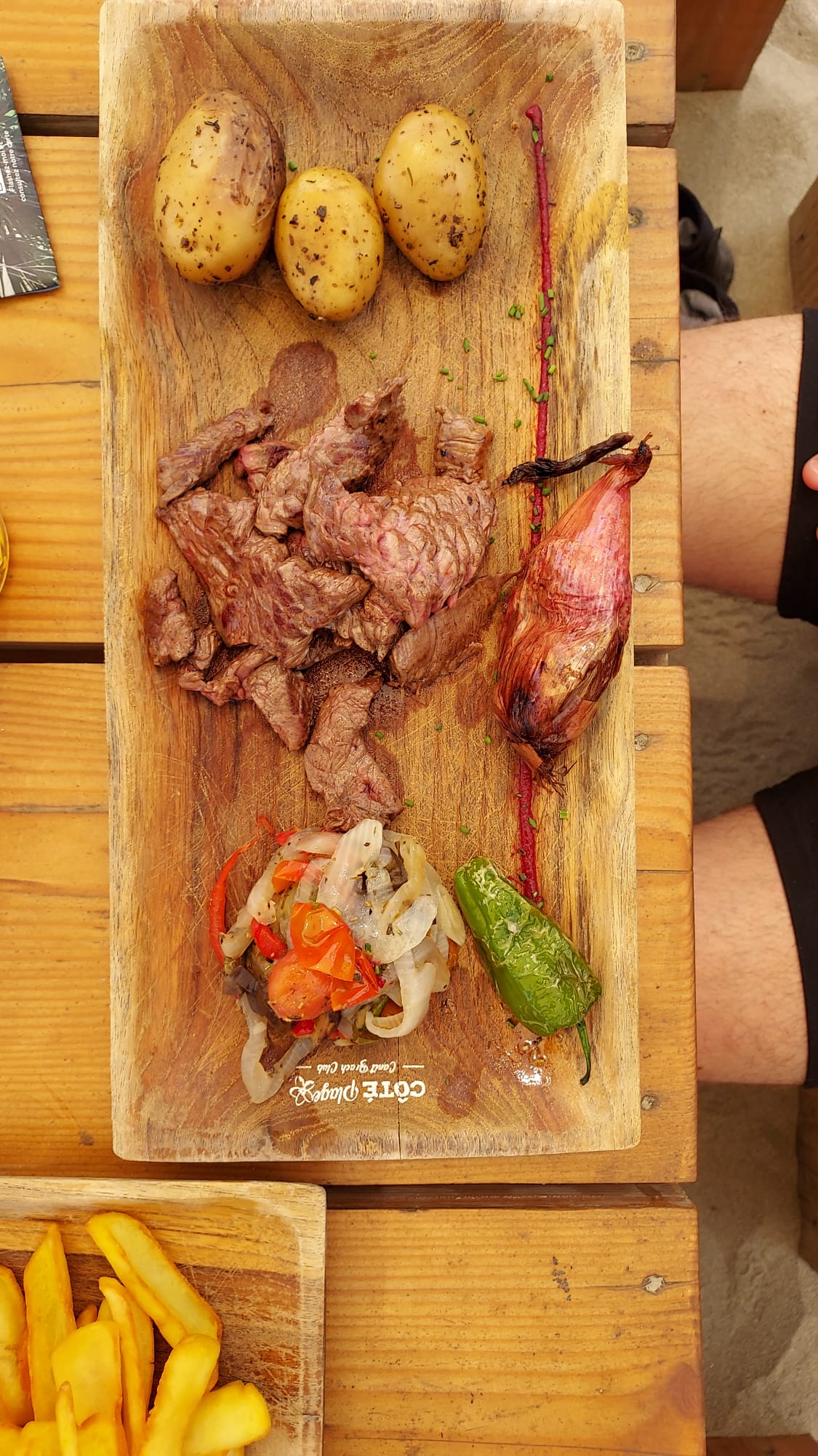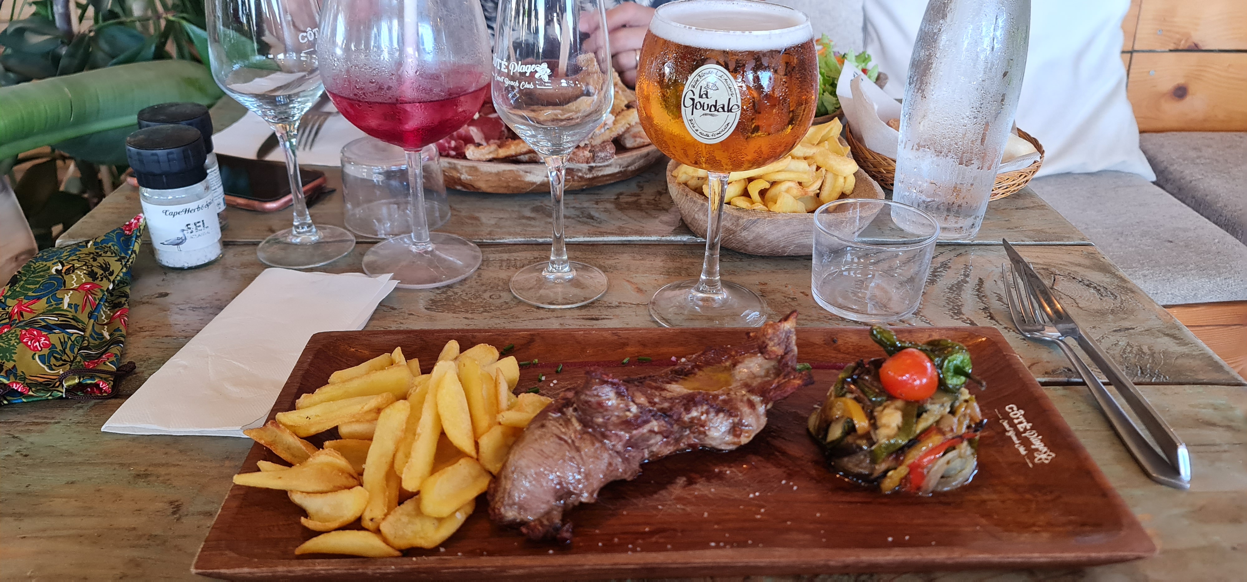 L’idée du barbecue de table est un concept très original. Vous pouvez faire cuire votre viande ou poisson ou les deux à votre convenance. Il y a aussi des légumes et frites honnêtement pour deux personnes c’est copieux. L’équipe est très sympa et à l’écoute, merci pour ça. De plus la vue est très belle. Il y avait même un groupe de musique très bien pour ce détendre. Je recommandes ce restaurant. Merci côté plage et à l’année prochaine pour les 10 ans.
