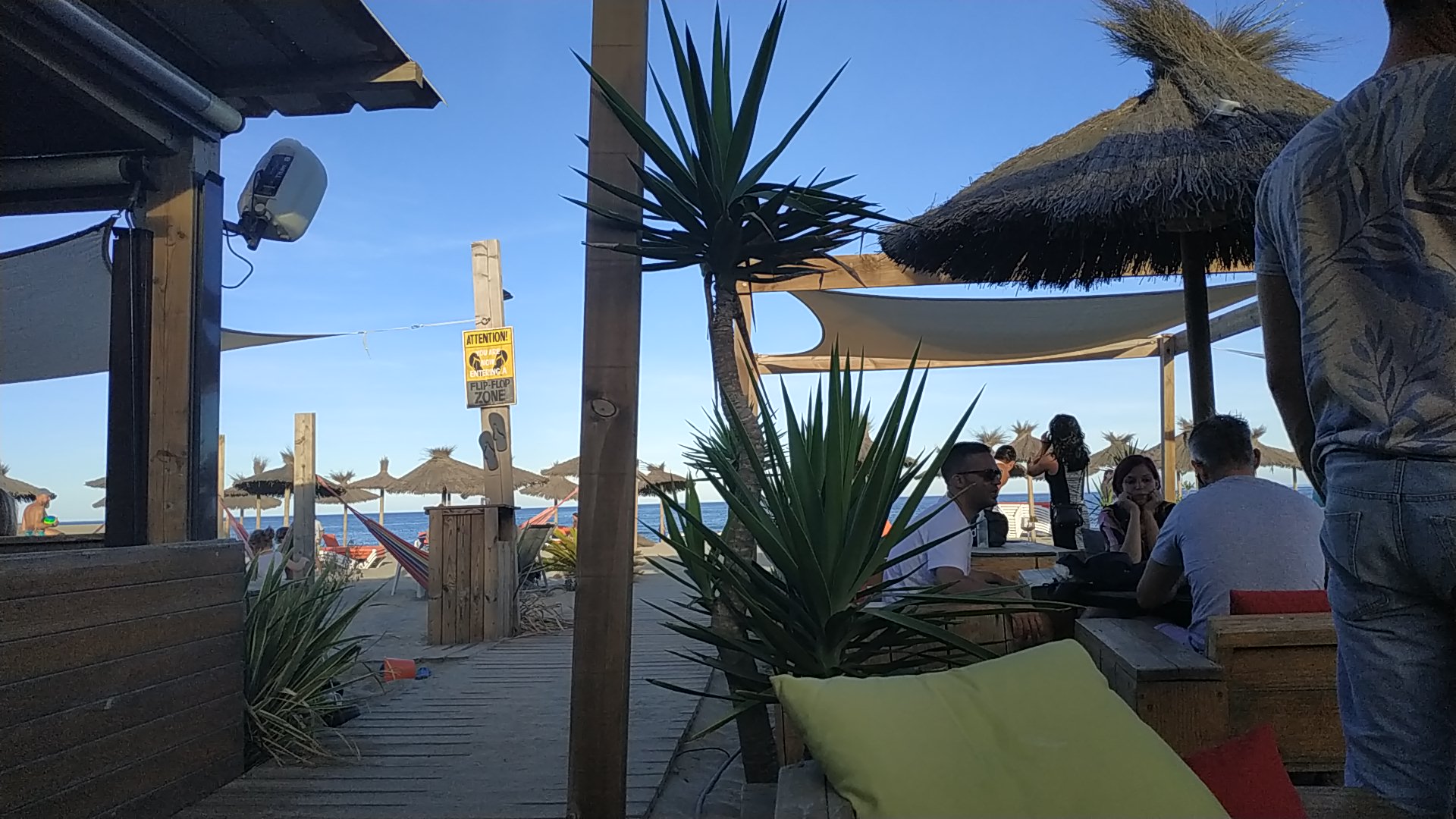 Endroit sympa en bord de plage pour prendre un cocktail ou un verre de rosé à l'heure de l'apéro. Assurez-vous de venir lorsque le vent n'est pas trop fort, sinon vous pourriez faire voler du sable.