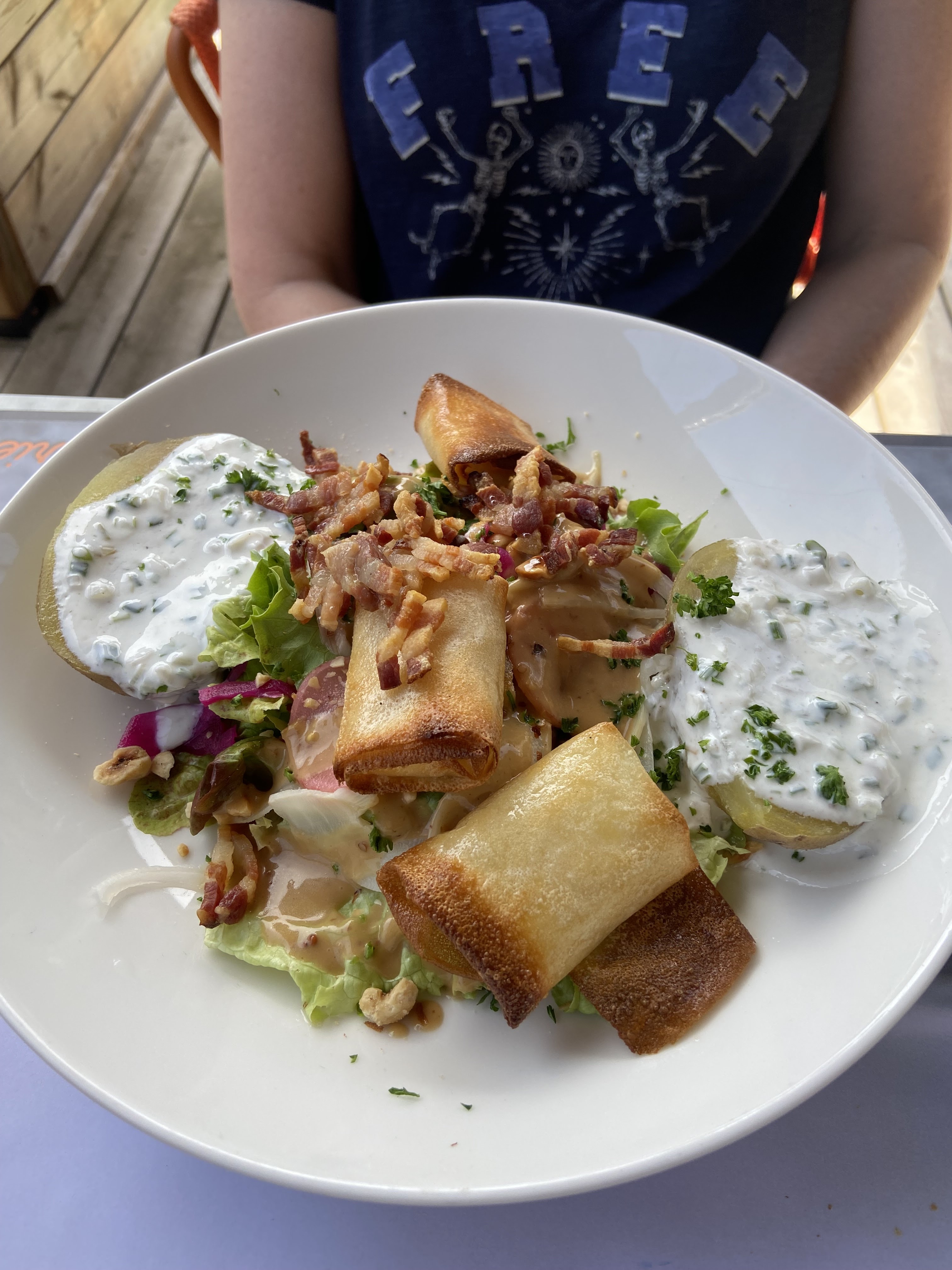 Malgré la chaleur étant de passage dans la région j’étais obligé de goûter un plat à base de fromage…! Très bonne et copieuse tartiflette 😋