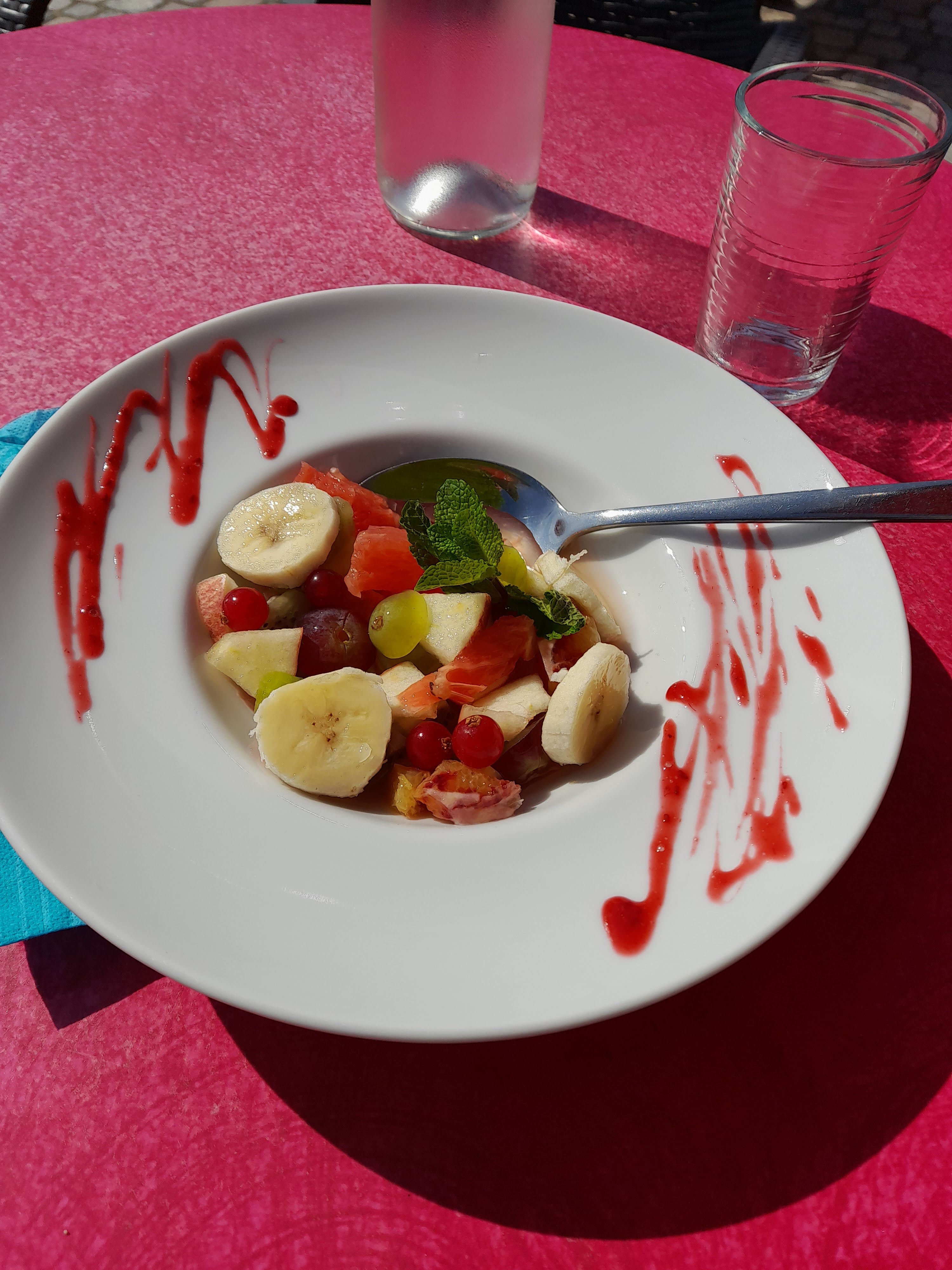 On s'est arrêté pour faire une petite pause au bord de la mer. Belle surprise avec leur salade de fruits frais et les cocktail sans ( ou avec ) alcool. De belles glaces , un personnel agréable. A refaire.