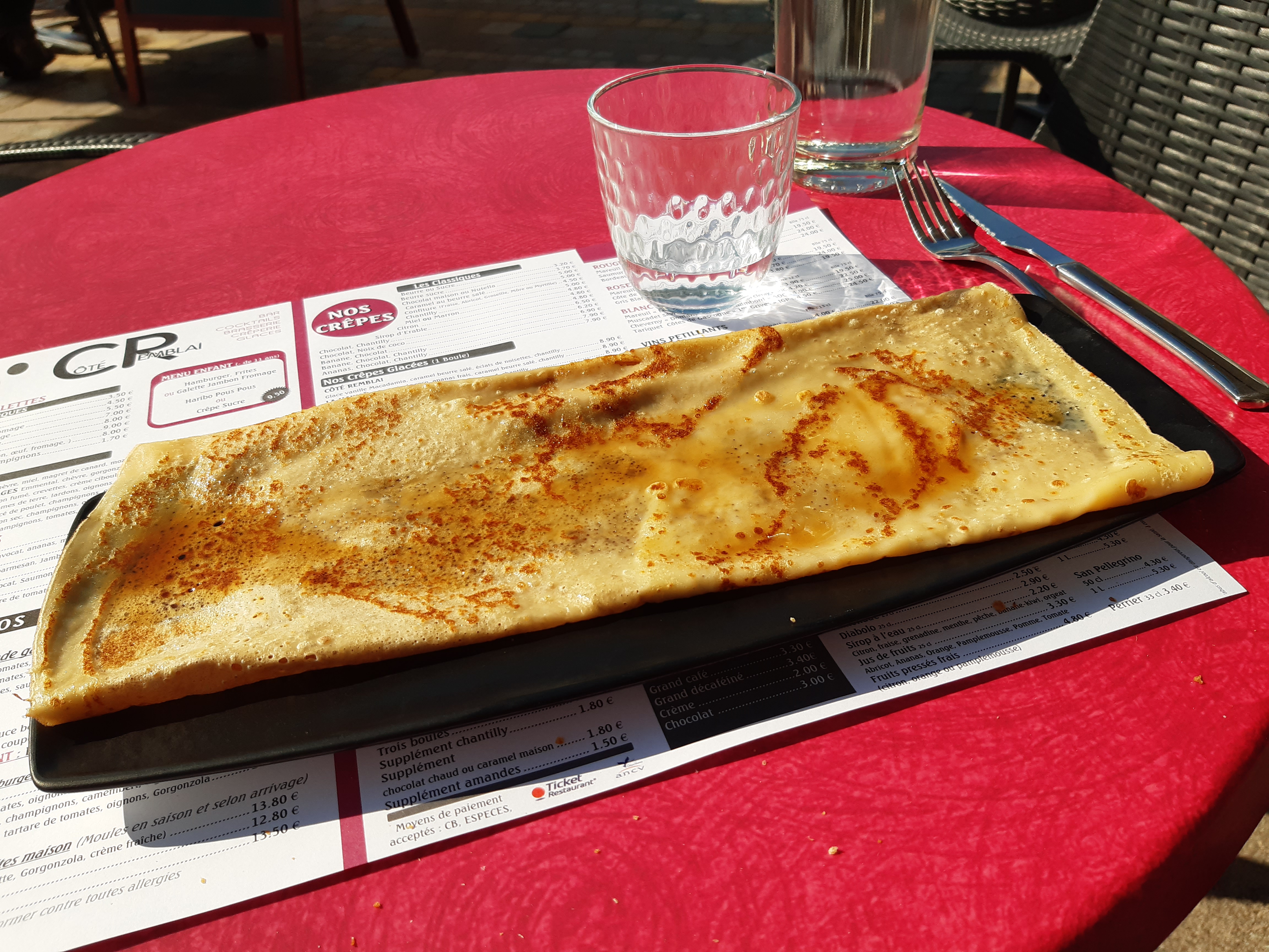 Une envie sucrée en milieu d'après-midi...une bonne crêpe beurre sucre joliment présentée et gentiment servie en terrasse avec vue sur la mer
