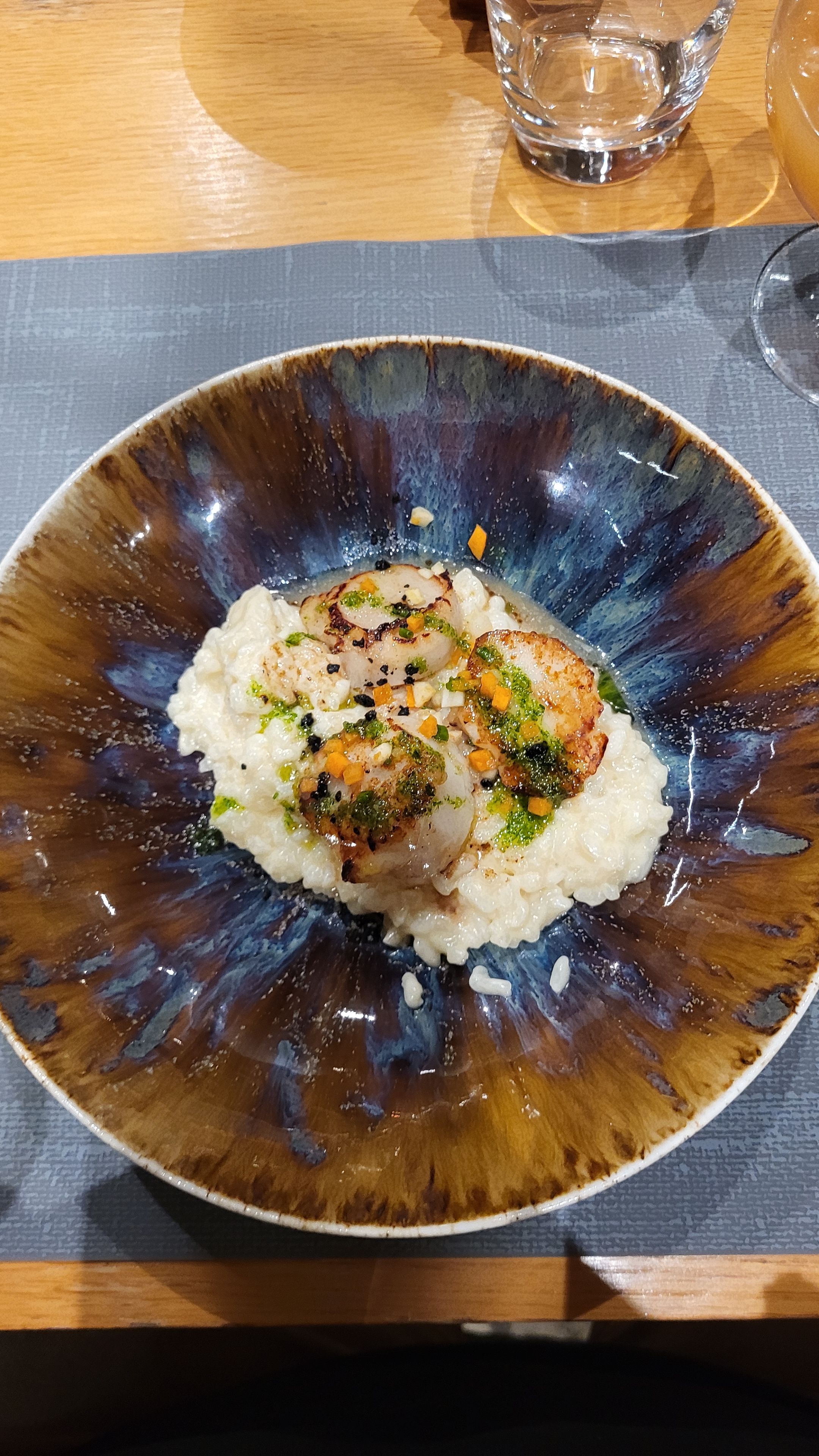 Foie gras minimaliste, jamais eu un si petit, risotto raté ! Mais geste commercial apprécié