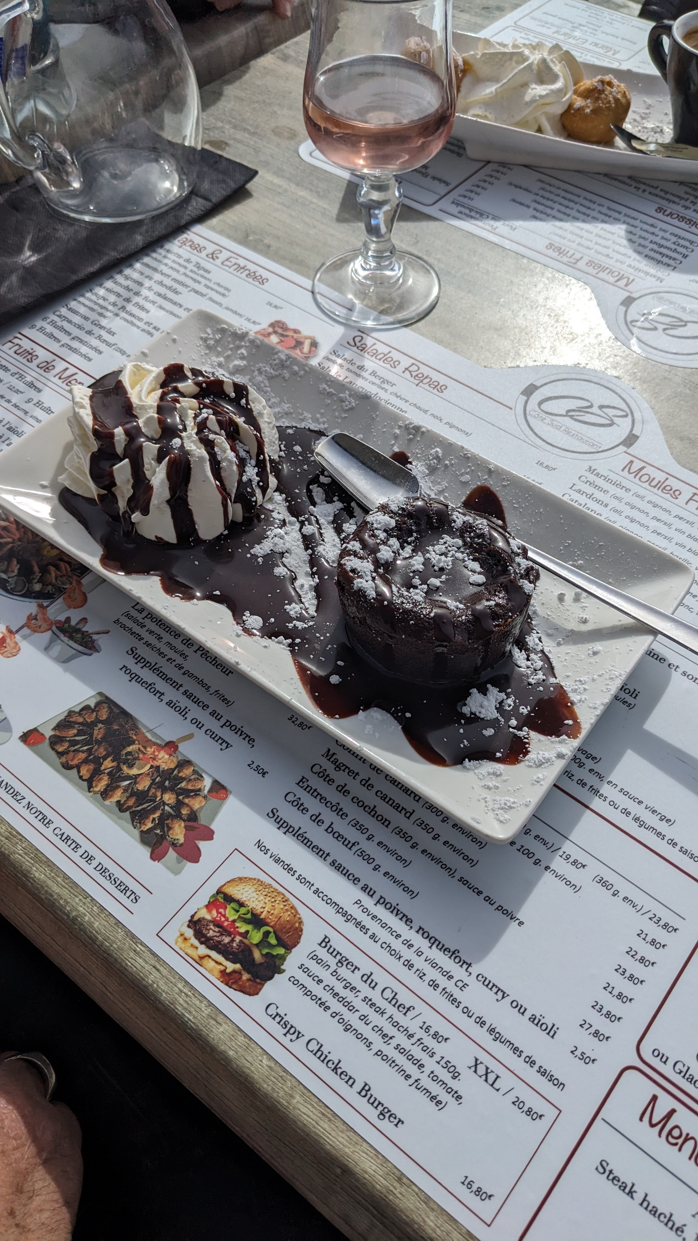 Encore une fois, pas déçus. Menu du jour à 13,80 € . Salade auvergnate, moules sauce catalane, mousse chocolat. Servi avec le sourire 😍