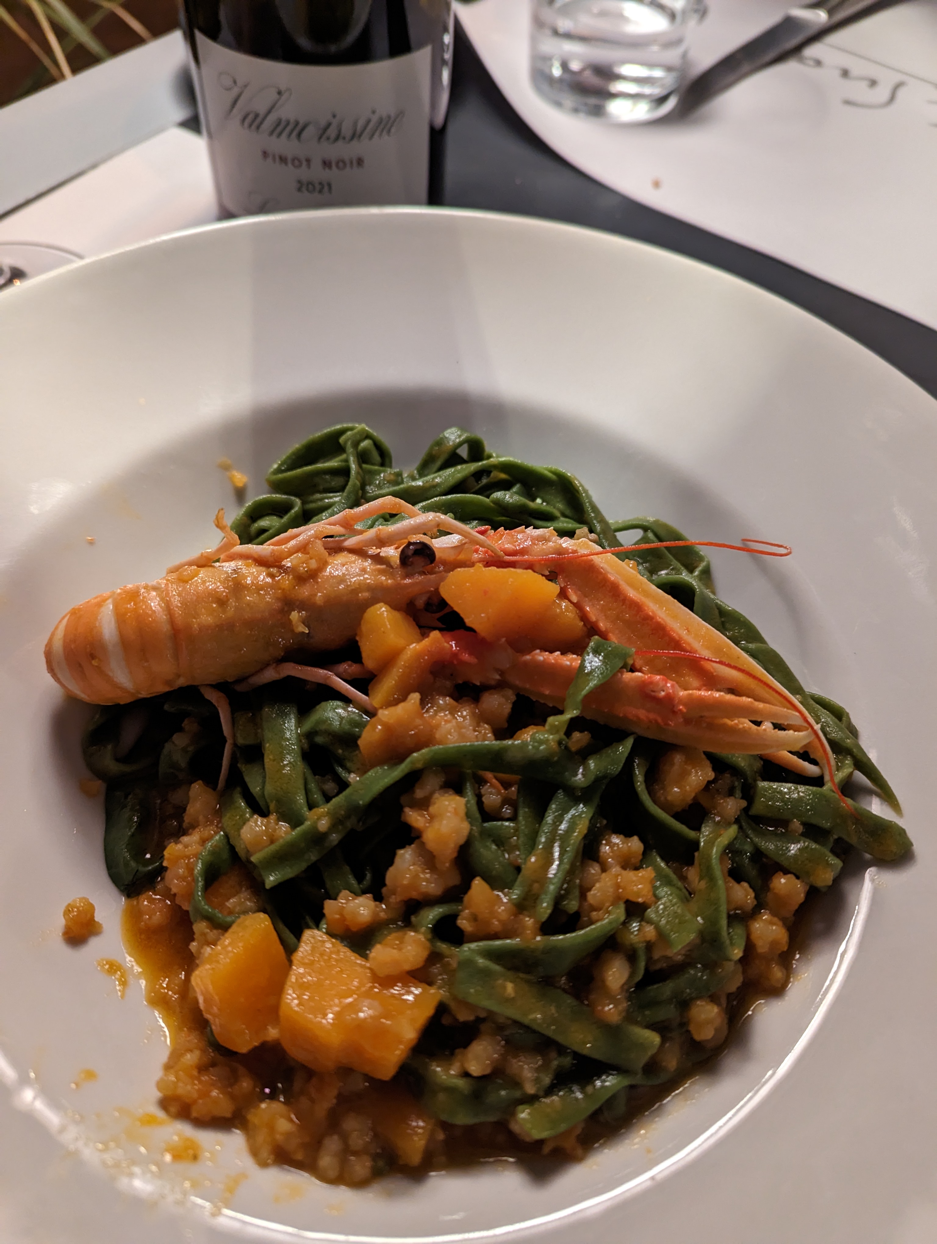 Les gnocchis de patates douces aux fruits de mer contenaient plein d'ingrédients, le restaurant surplombe la magnifique Menton - super d'être ici par beau temps :)