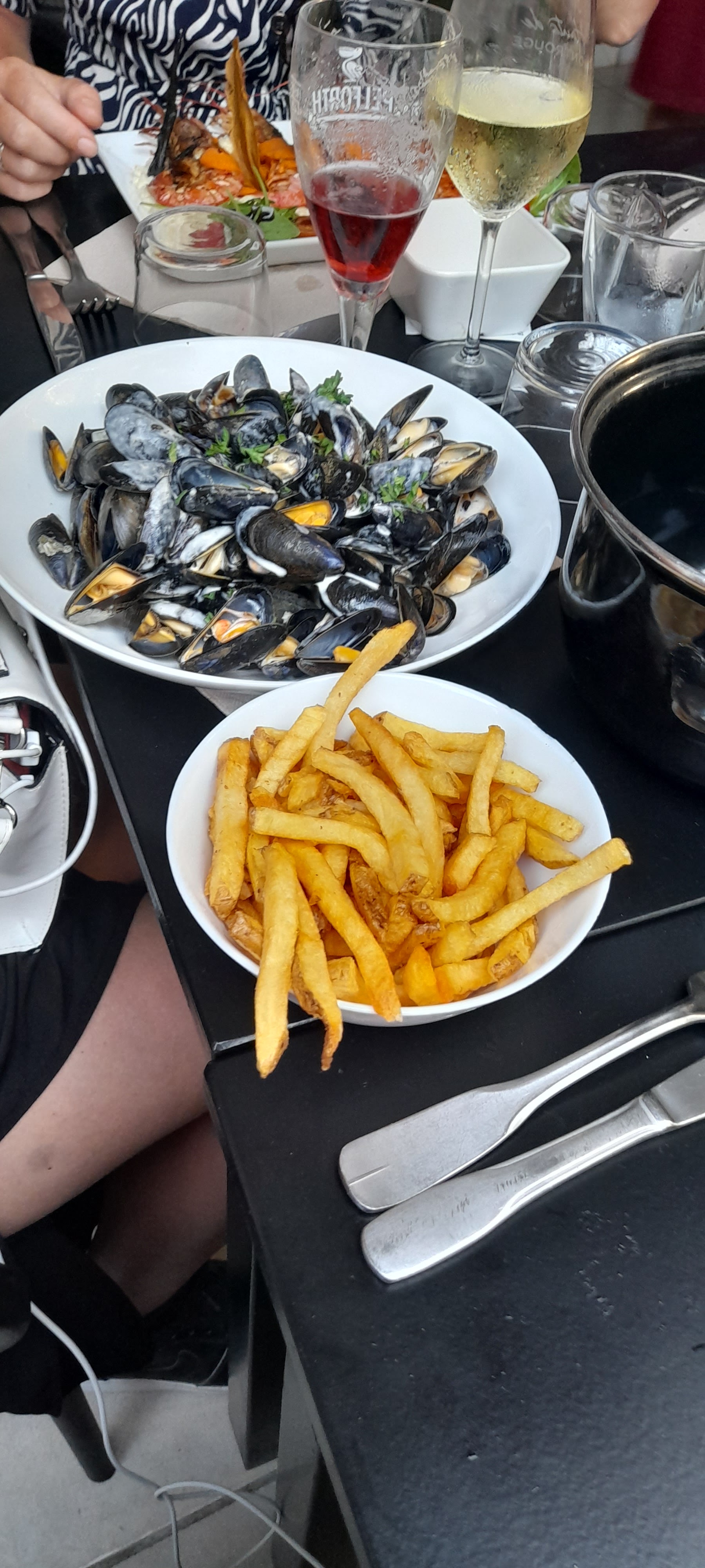Moules frites commandées. Jamais vues des moules aussi petites. Abondantes, mais trop petites.Dommage, le pichet de rosé à 7 € est correct (cote de Gascogne)