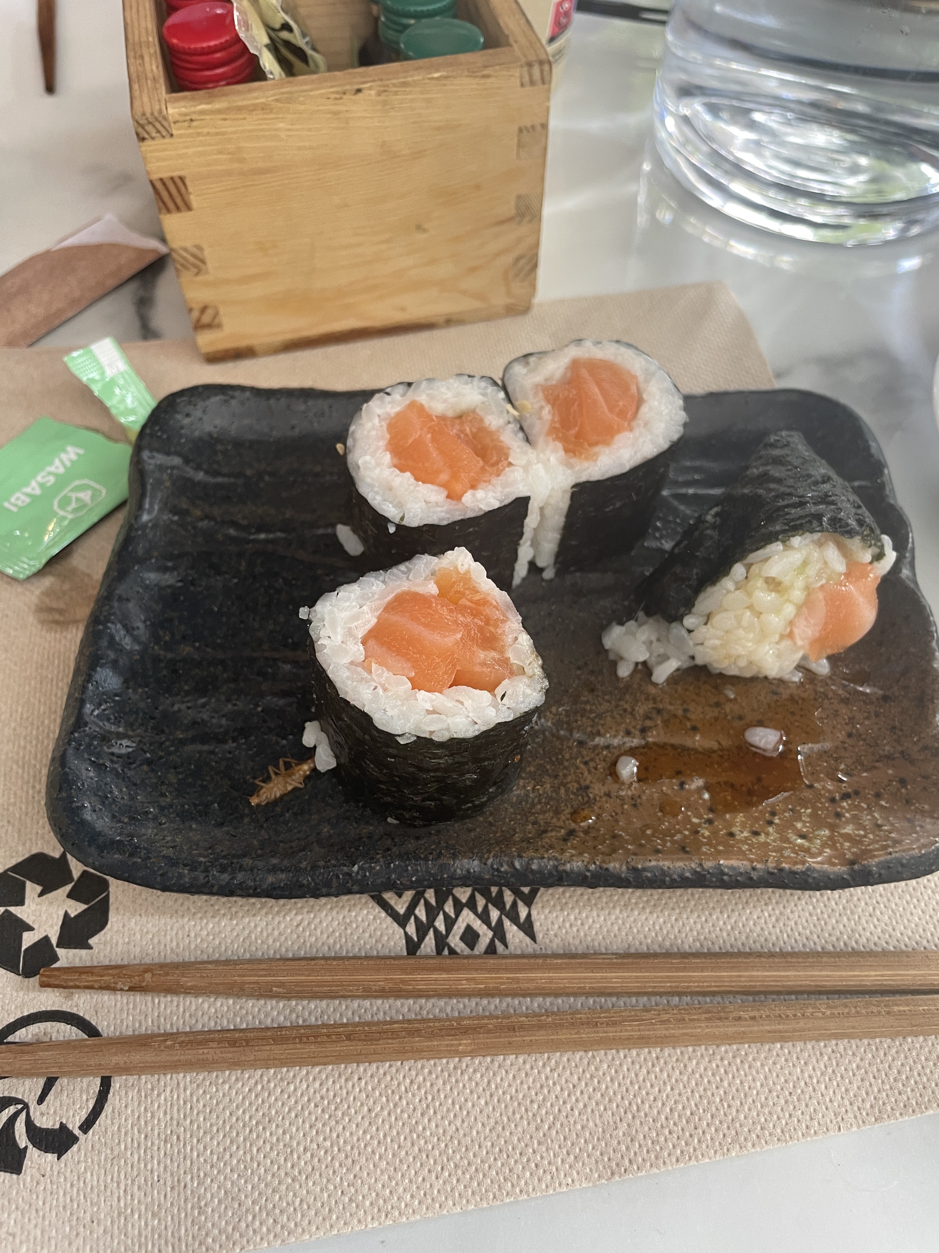 Des moucherons PARTOUT à l’intérieur, dans un restaurant qui doit être impeccablement propre car sert du poisson cru! C’est choquant! La quantité est petite pour un prix exorbitant au vue de la qualité! En plus service désagréable.
