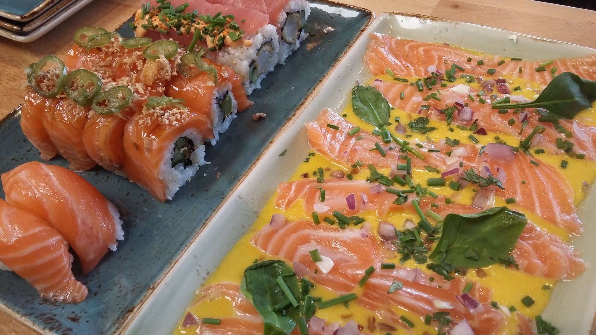 Une superbe découverte. Les sushis sont bons mais je recommande de tester des plats plus exotiques tel que les céviches ou différentes assiettes accompagnés de sauces originales qui se marient très bien avec ces excellents produits frais (coco, menthes & coriandre : à tomber). Merci pour le très bon accueil et salutations à tte l'équipe!