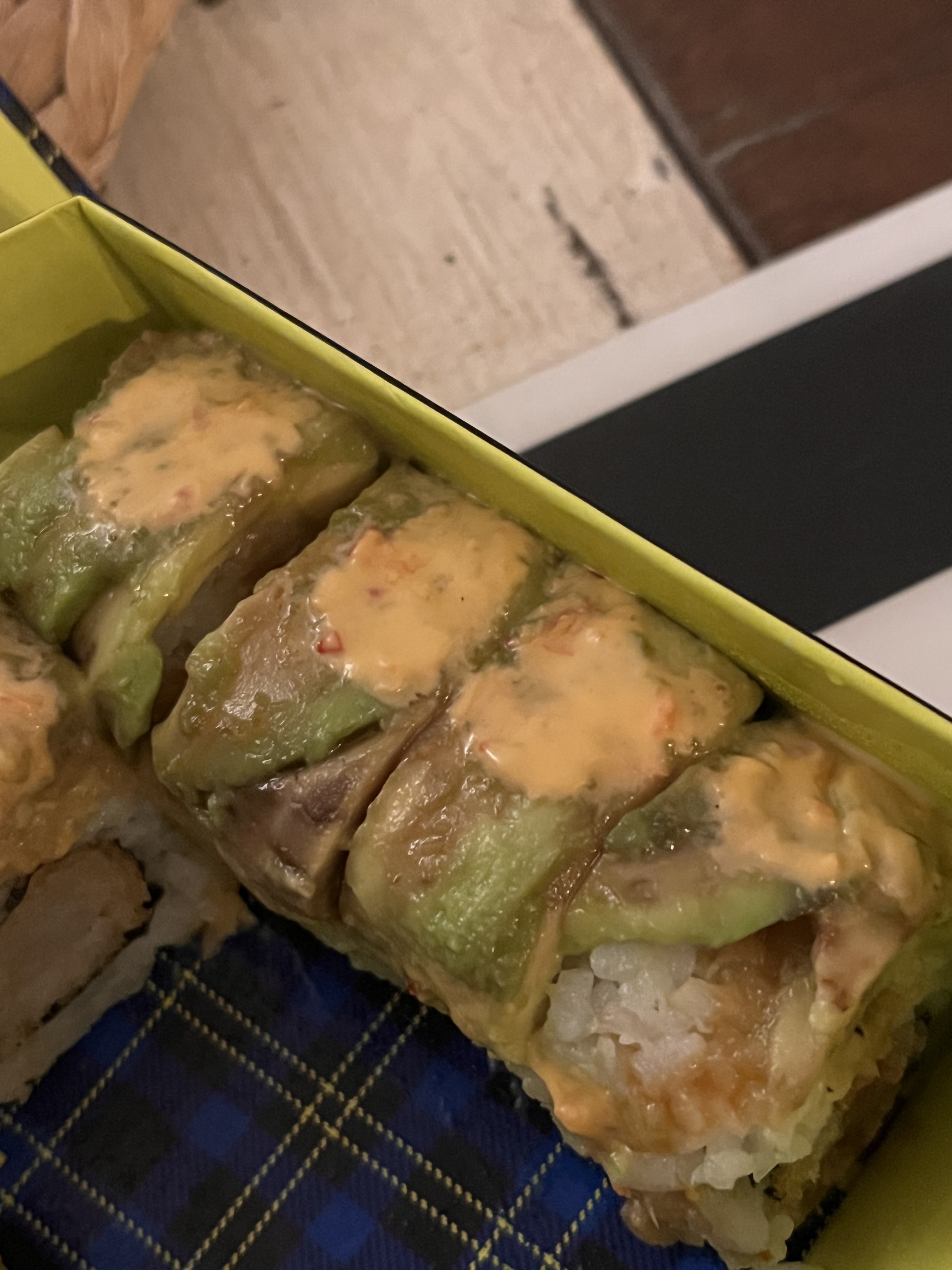 Commande arrivée dans un état déplorable. Les sashimis impropres à la consommation sont partis directement à la poubelle étant donné l’odeur nauséabonde et la texture gluante. Les avocats noircis sur les california etc… En tant que restaurateur n’oubliez pas que vous jouez avec la santé des gens.